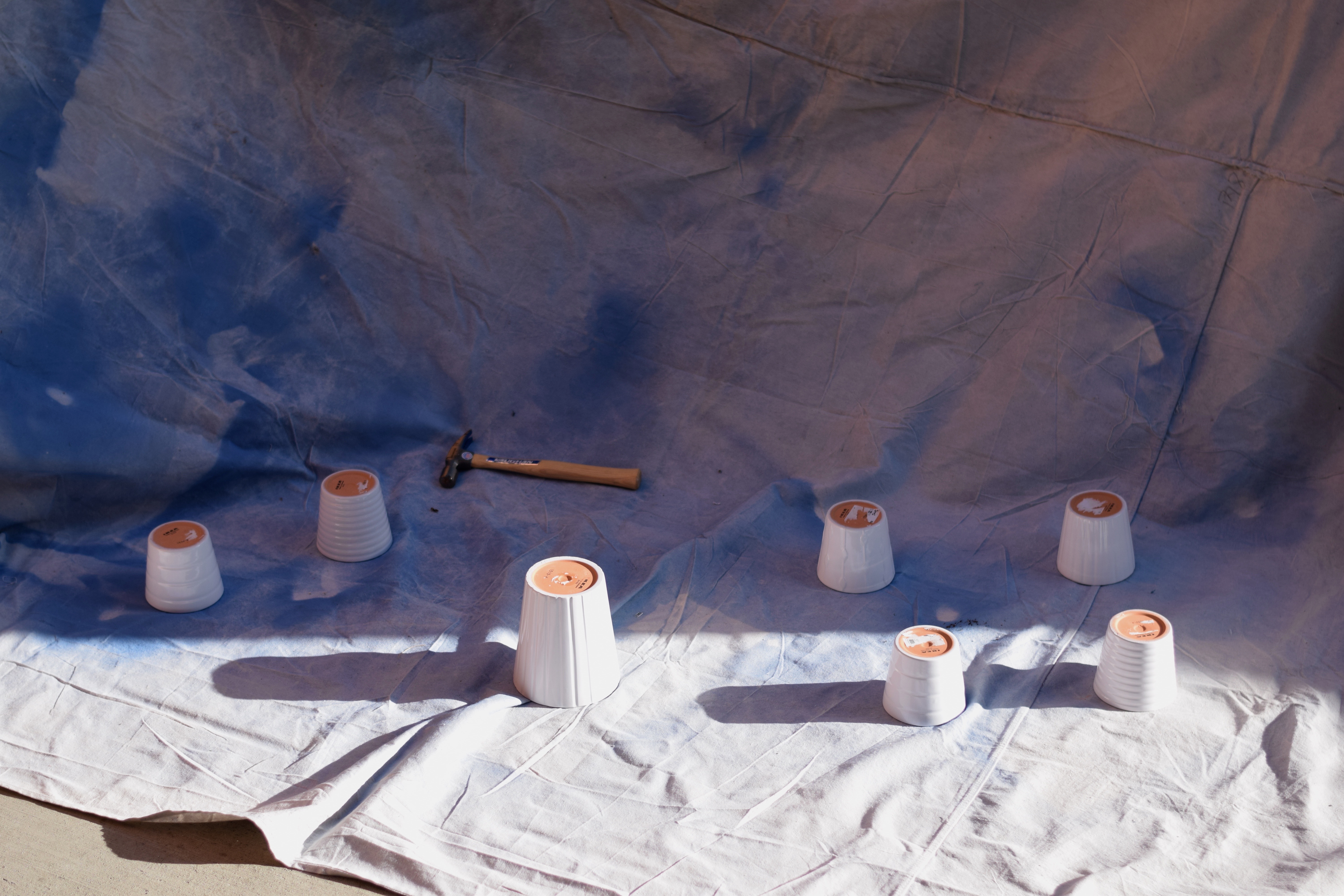 Then it was actually time to get painting!! I set out all my pots on my canvas tarp, put on my elaborate painting mask, and got to work!