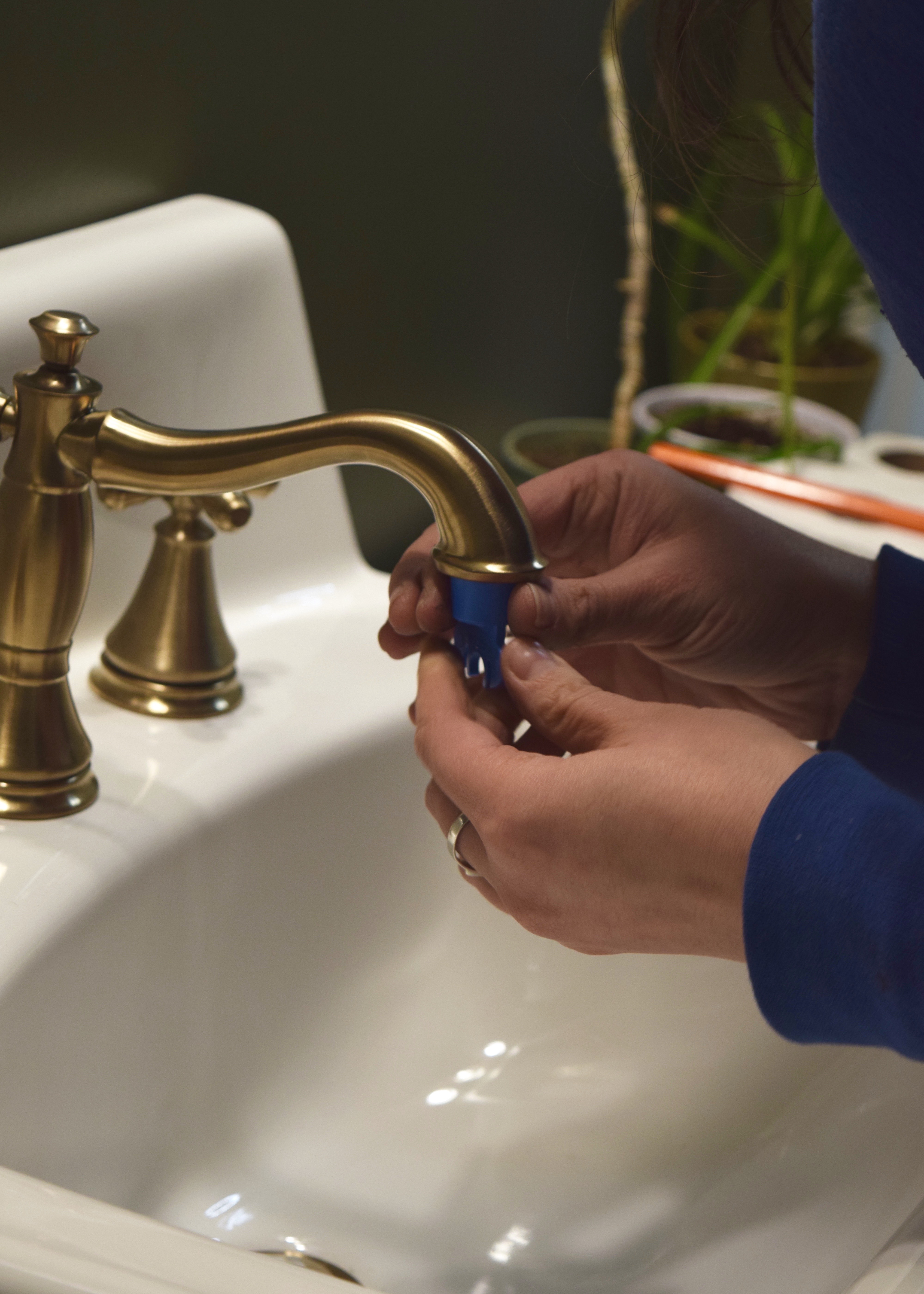 The faucet was working great and after a few minutes (and an almost full bucket of water!), I wasn’t seeing any sediment, so I went ahead and used the little included tool to reinstall the aerator before moving on to the final step!
