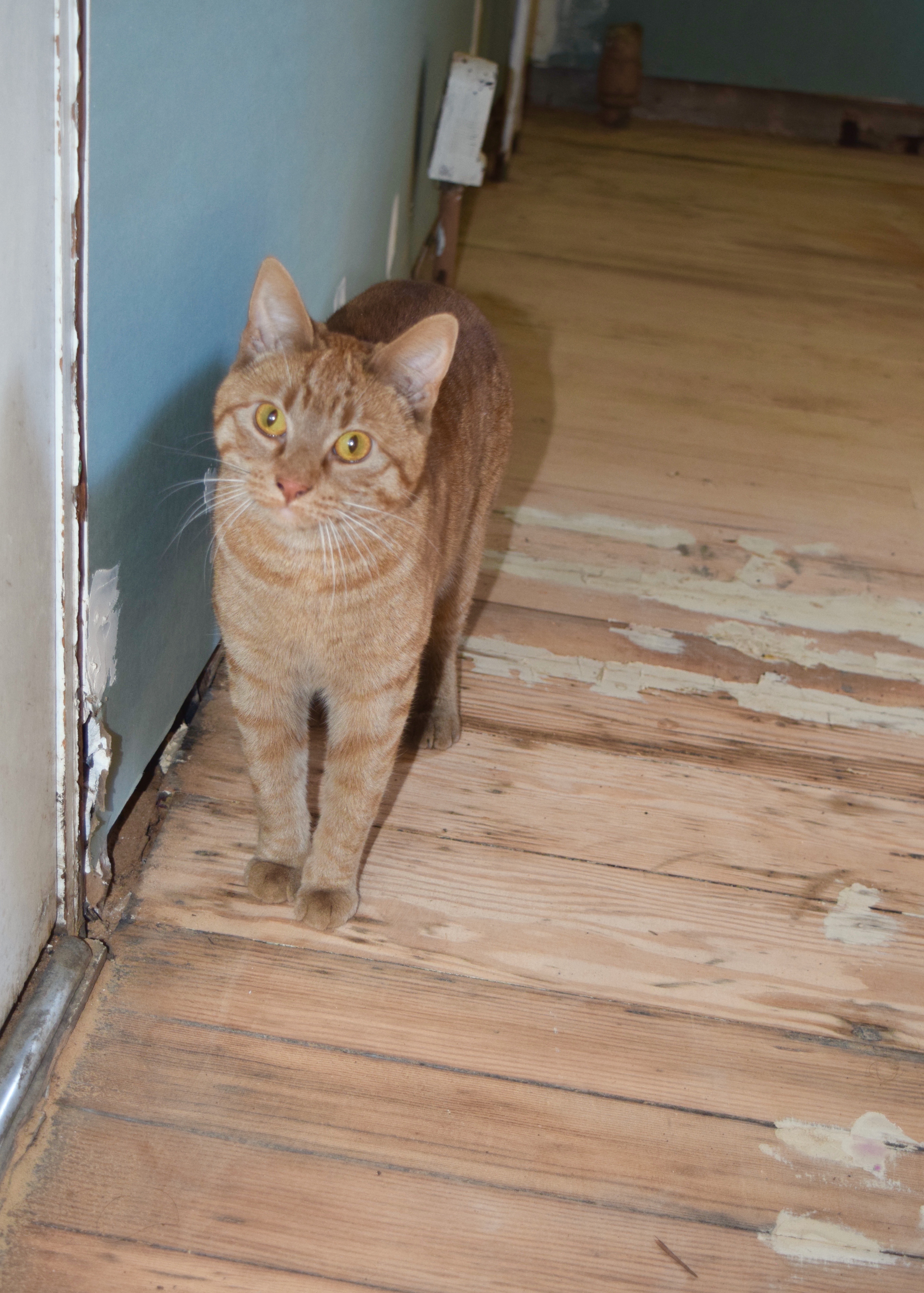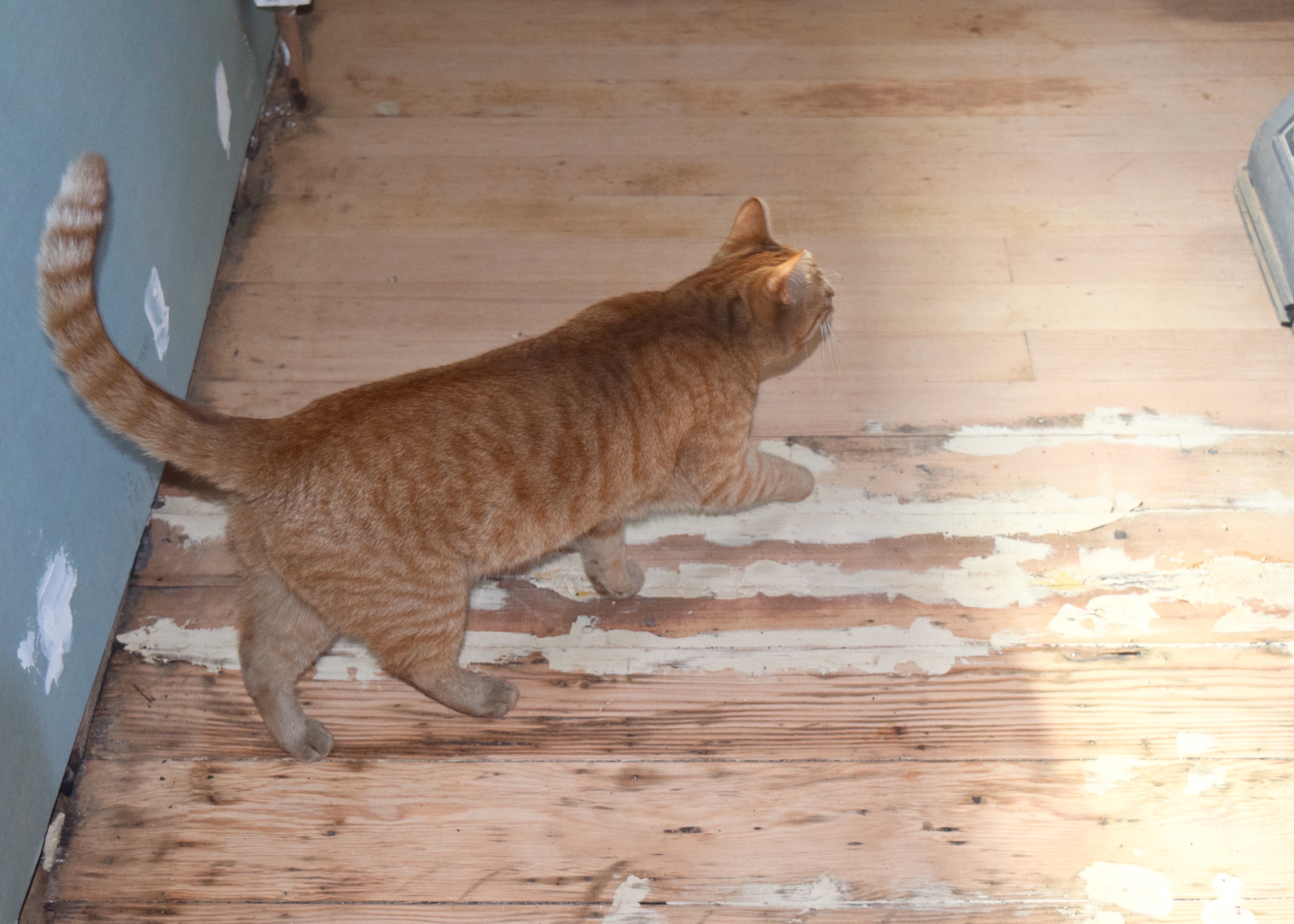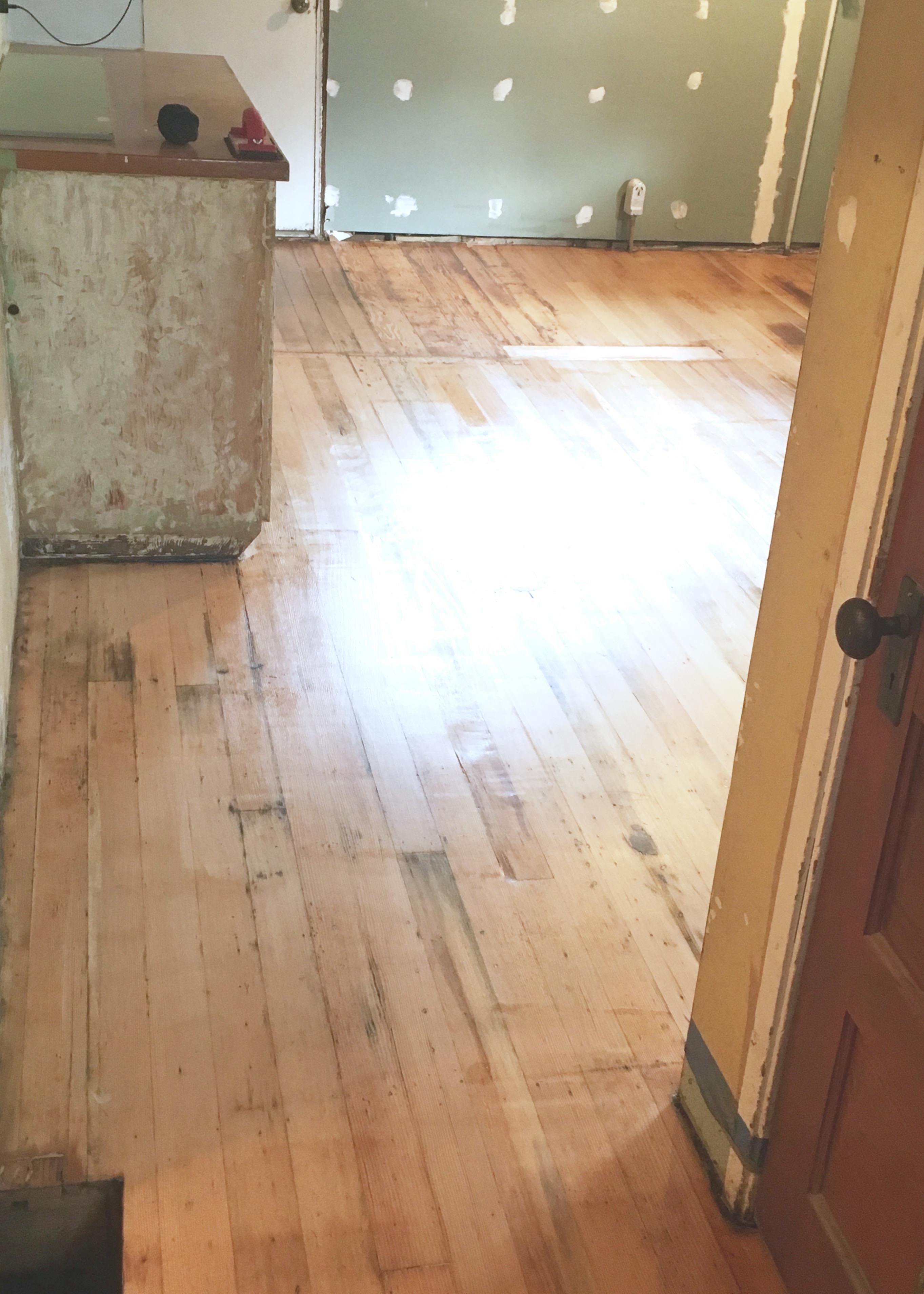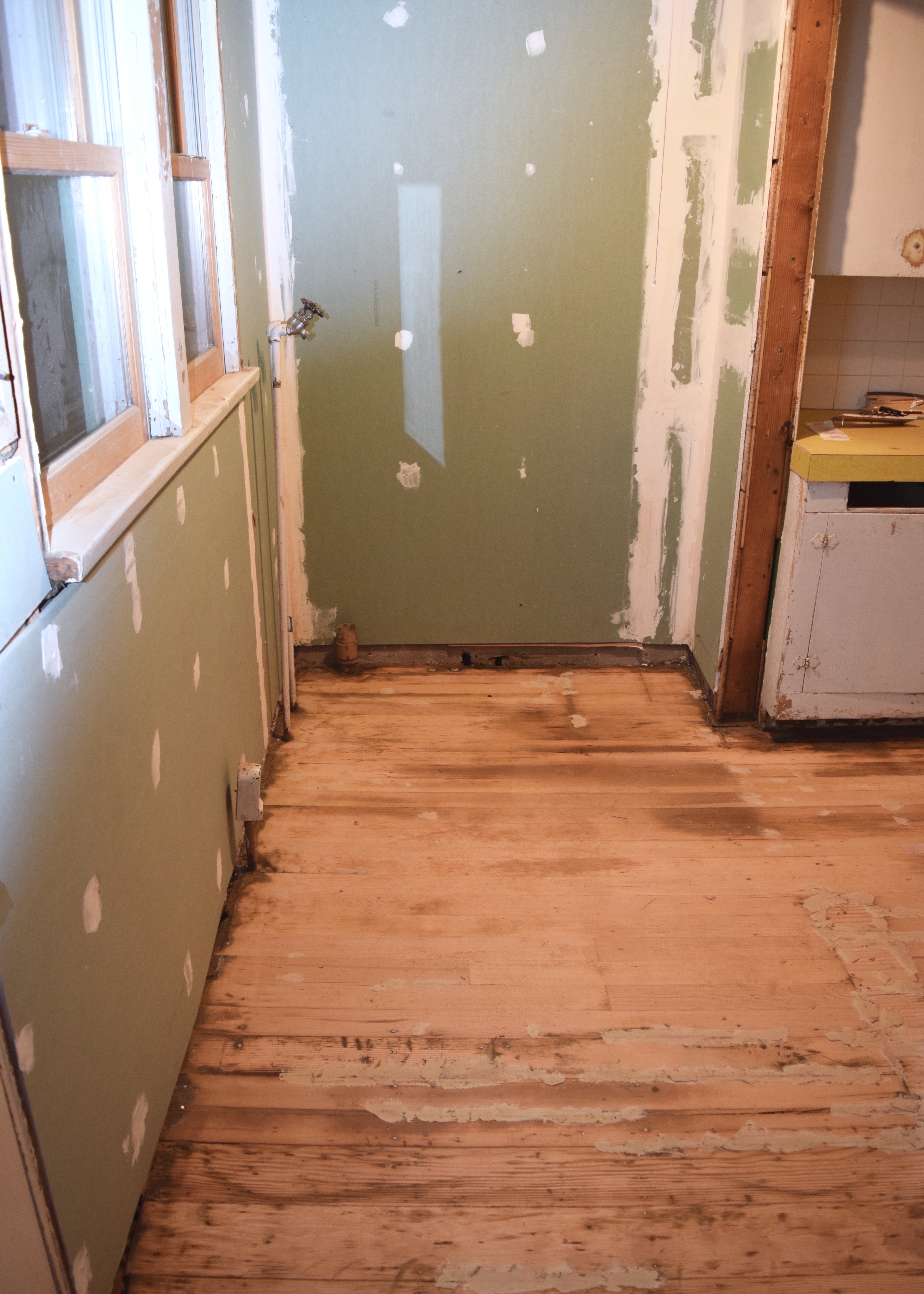 It was nice when they were gone. Now a professional would have probably feathered in the boards removing more from the (maybe) former-pantry and adding in long boards that stretched into the main part of the kitchen. But I didn’t do that, because a) that would have been way more work, b) I don’t want to be responsible to removing perfectly good floor boards and THEN HAVING TO PUT THEM BACK IN, and c) this patch helped explain the history of the house to me and I don’t believe in revisionist history, I wanted to have my new patch still tell the same story, just prettier.