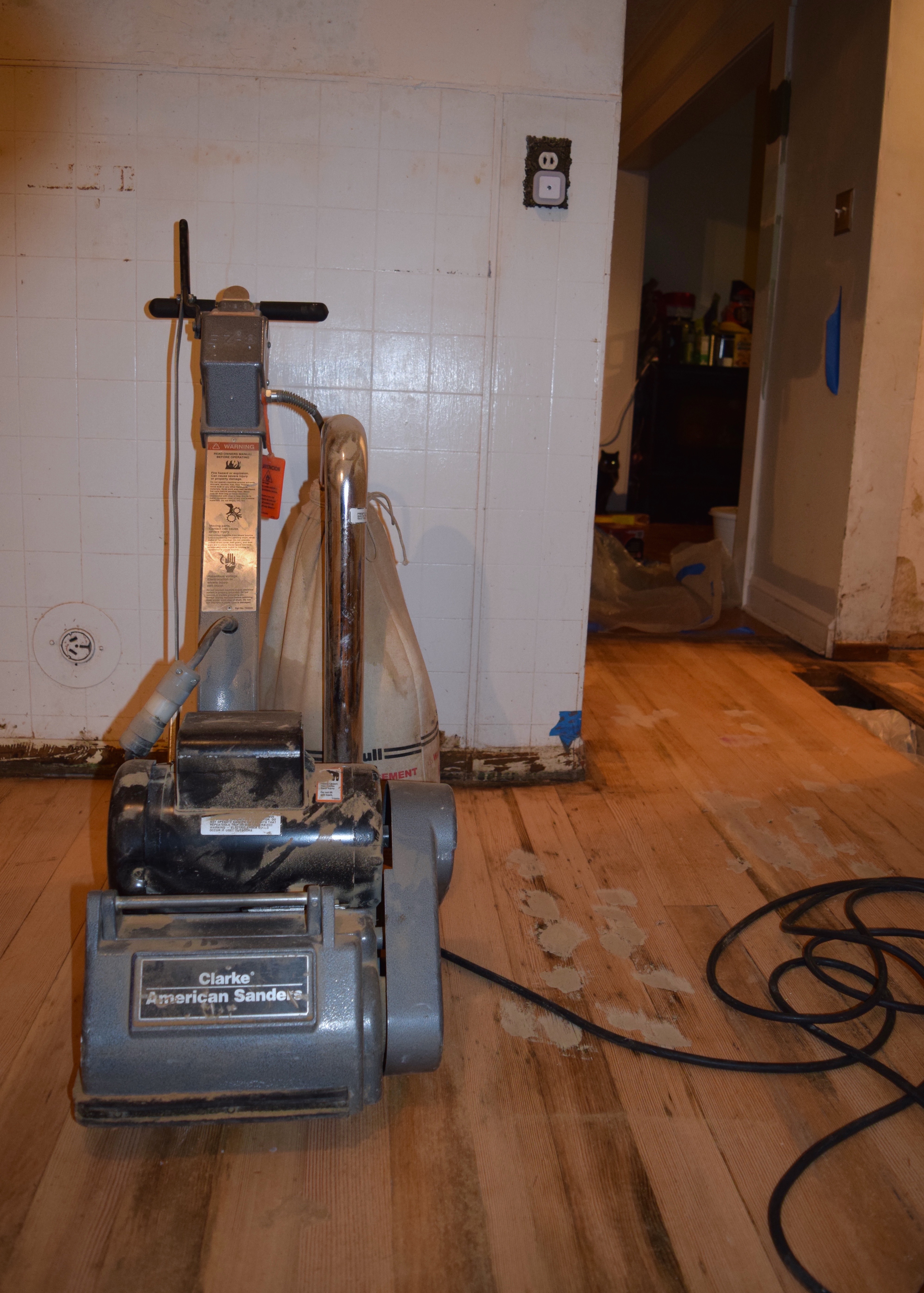 That’s about as far as we got that weekend. My parents left and then it was time to really sand. Bronwyn and I started working after I got off in the evenings. We had a polisher from Erik (who provides me with all the tools I don’t even know exist until he brings them over) with 36 grit sandpaper and then the drum sander (my favorite tool ever!).