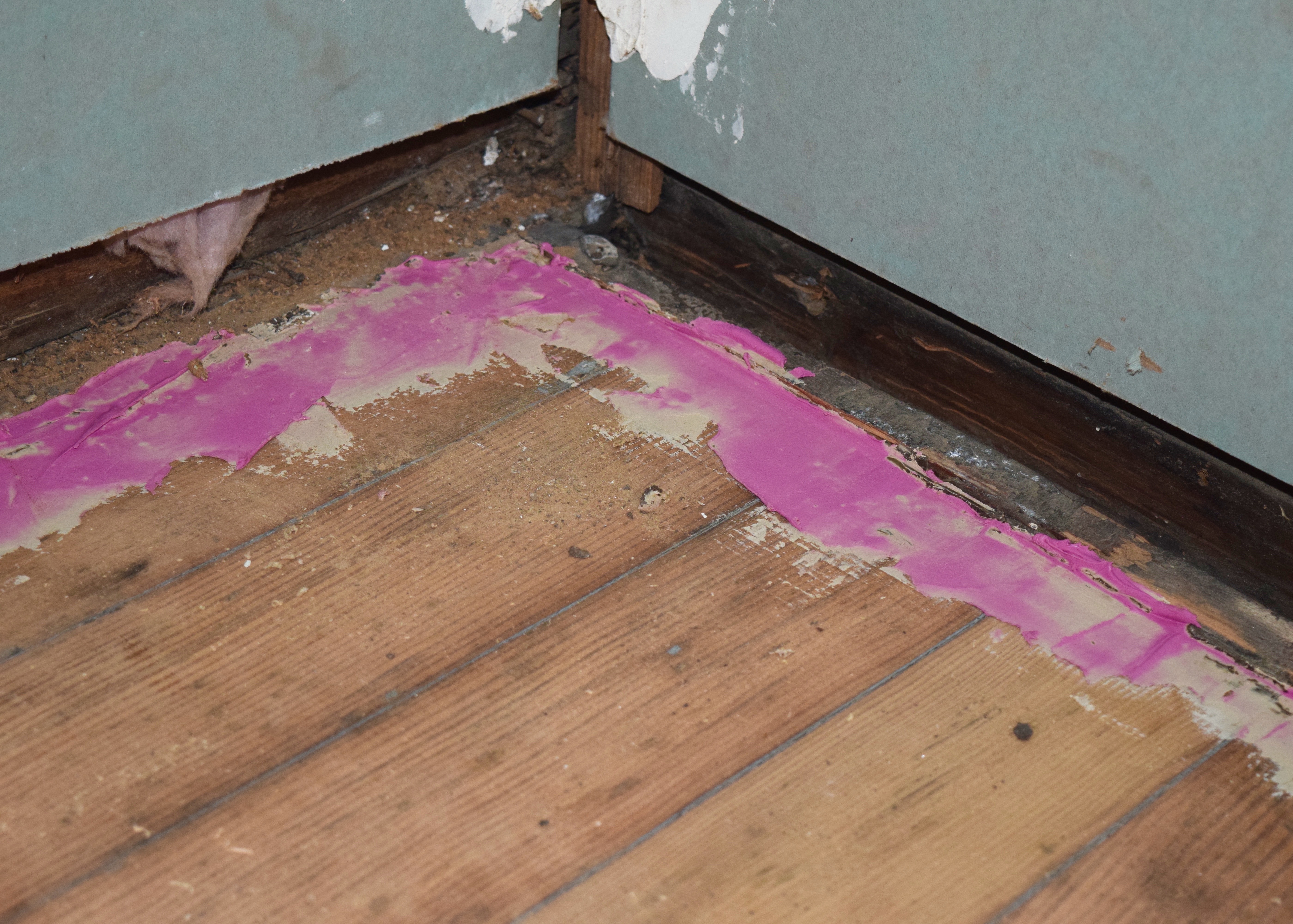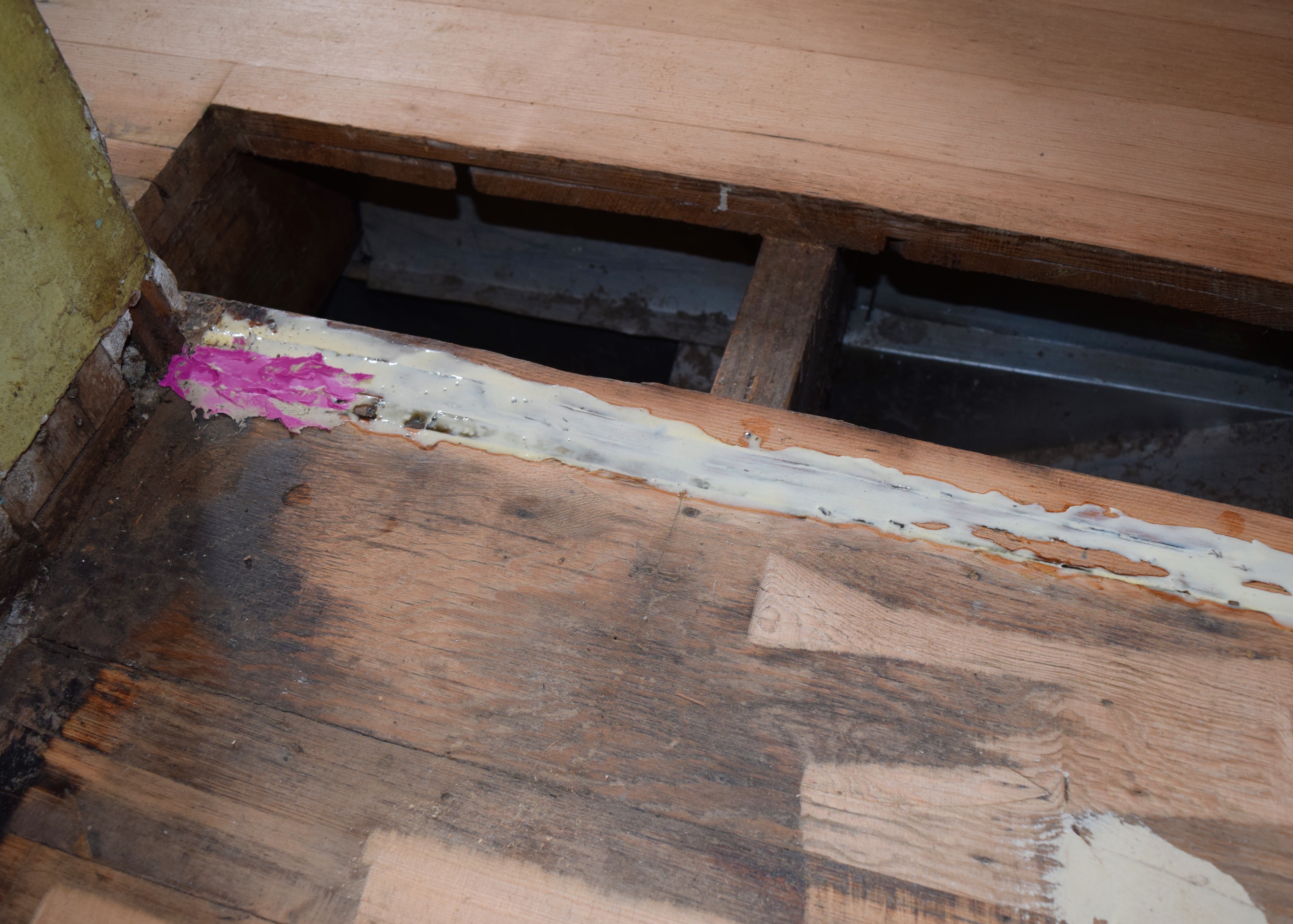Other damages I had caused. There were definitely big gouges taken out of the floor when I was using a big floor scraper and trying to remove the layers of sheet vinyl. It was an unfortunate part of that task and one I wish I hadn’t resorted to, but, hey, more wood filler it was!
