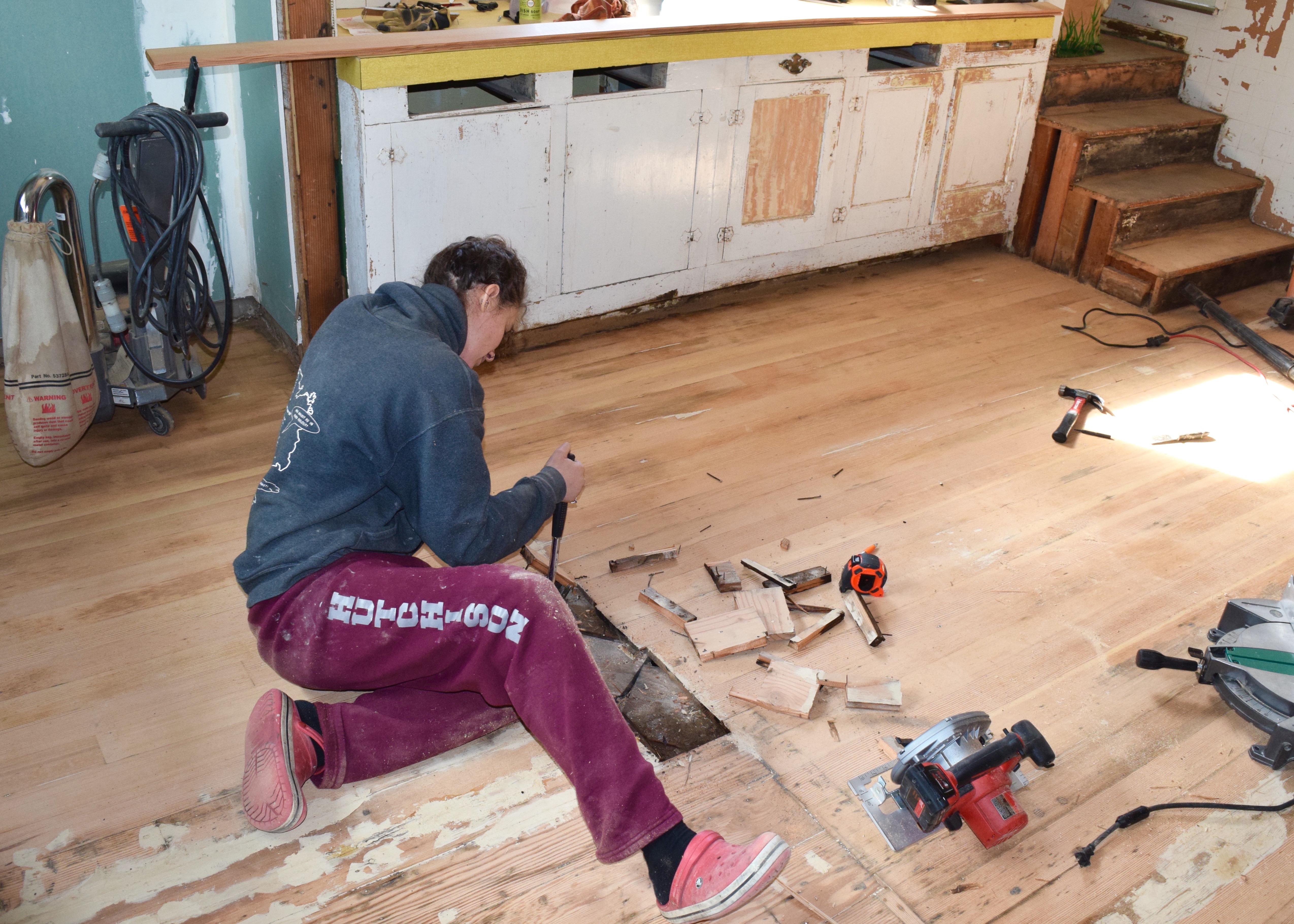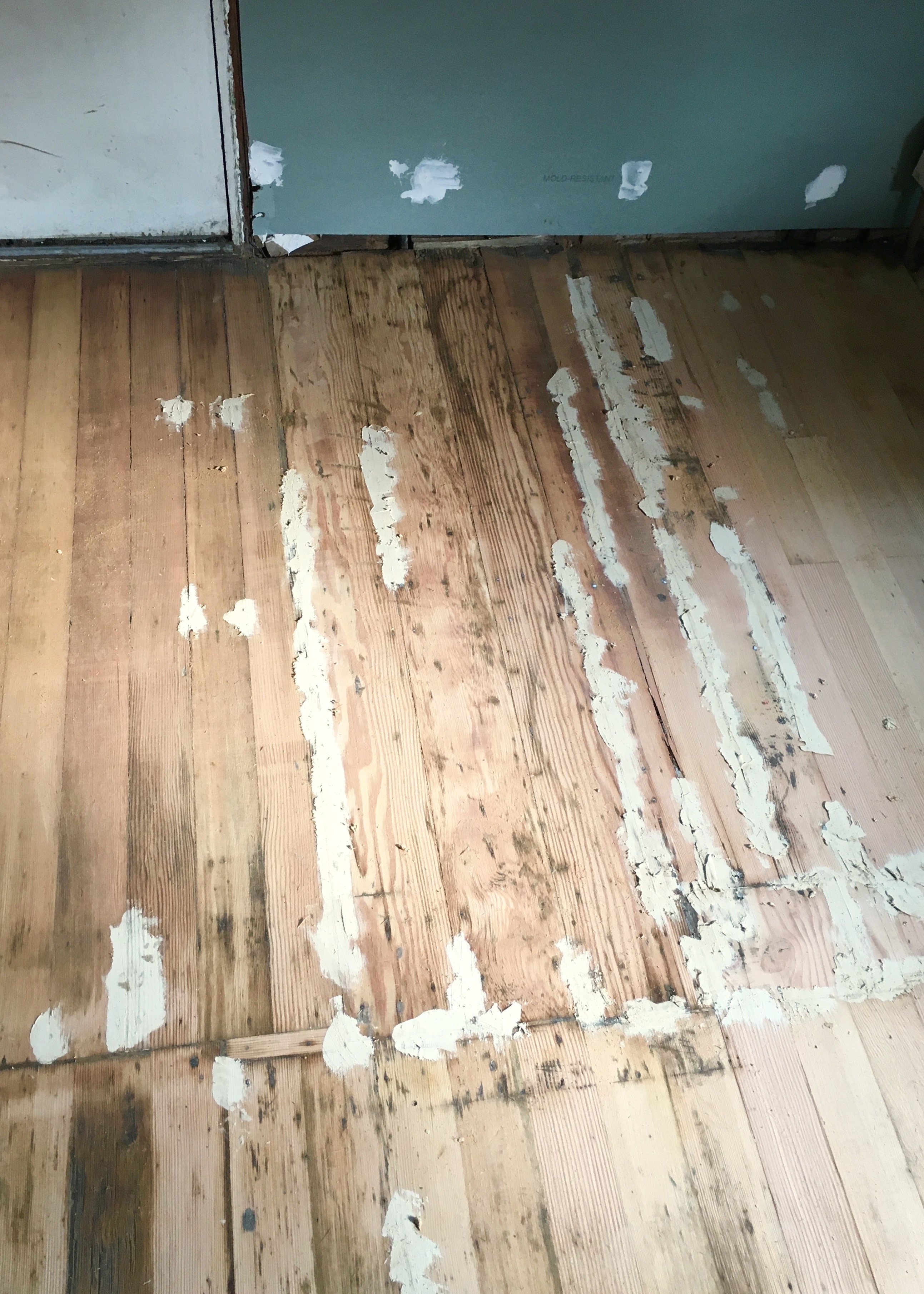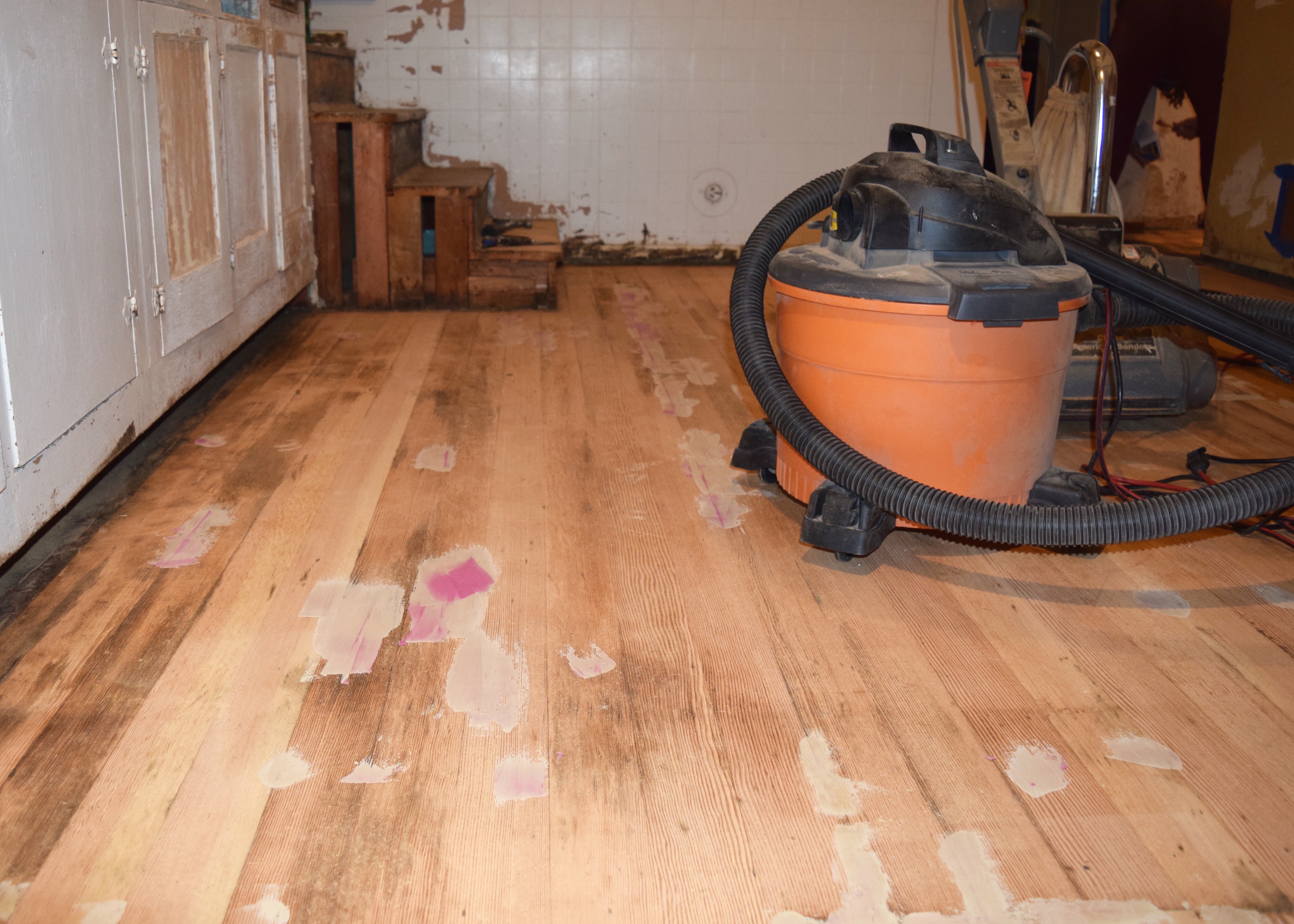 2. This was amazingly useful as well as entertaining to read. We are at the same point you were after removing layers of vinyl and other floor covering in our 1940s beach house kitchen. There’s black tarry stuff and lots of sharp nail ends sticking up (I think the heads got ripped off, so walking across the floor now is a dangerous exercise). We were told by our project manager that we should just forget about saving the floor. The rest of the house has all pine flooring and we had been excited at the prospect of continuing that in the kitchen. We knew there was good wood under all the tile and lino because we removed the cabinets and could see the base floor along the edges. I lamented having to figure out what to put on top of the floor, which does have one large patch kind of right in the middle. But after searching for solutions and finding your post, maybe we can save it. I read the two kitchen floor posts this morning and shared them with my husband. We are in our 70s and I don’t know if we have the stamina that you’ve got, so it’ll be up to our floor restoring crew to tell us if they can do this. Oh, and my daughter’s name is Bronwen. 🙂