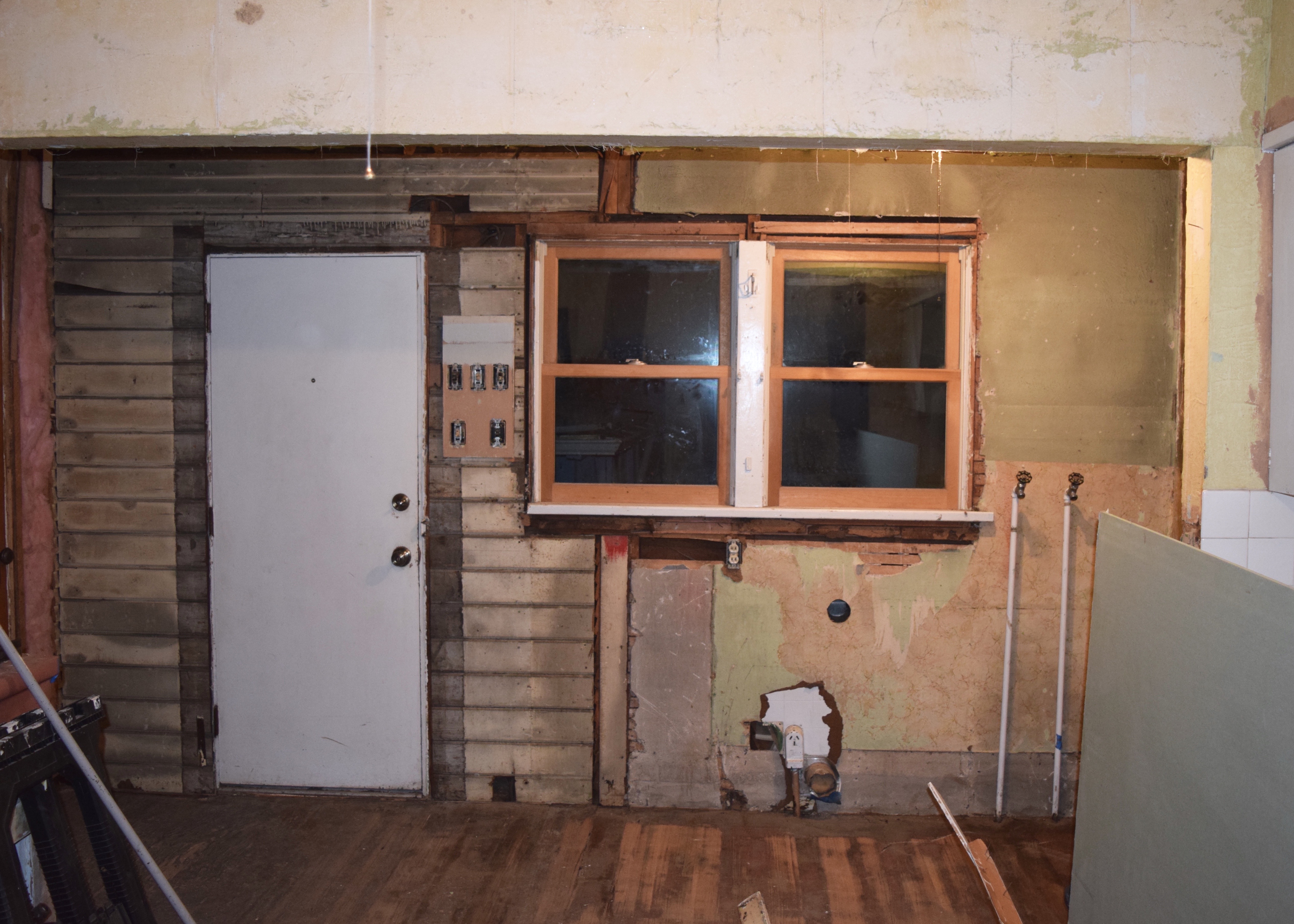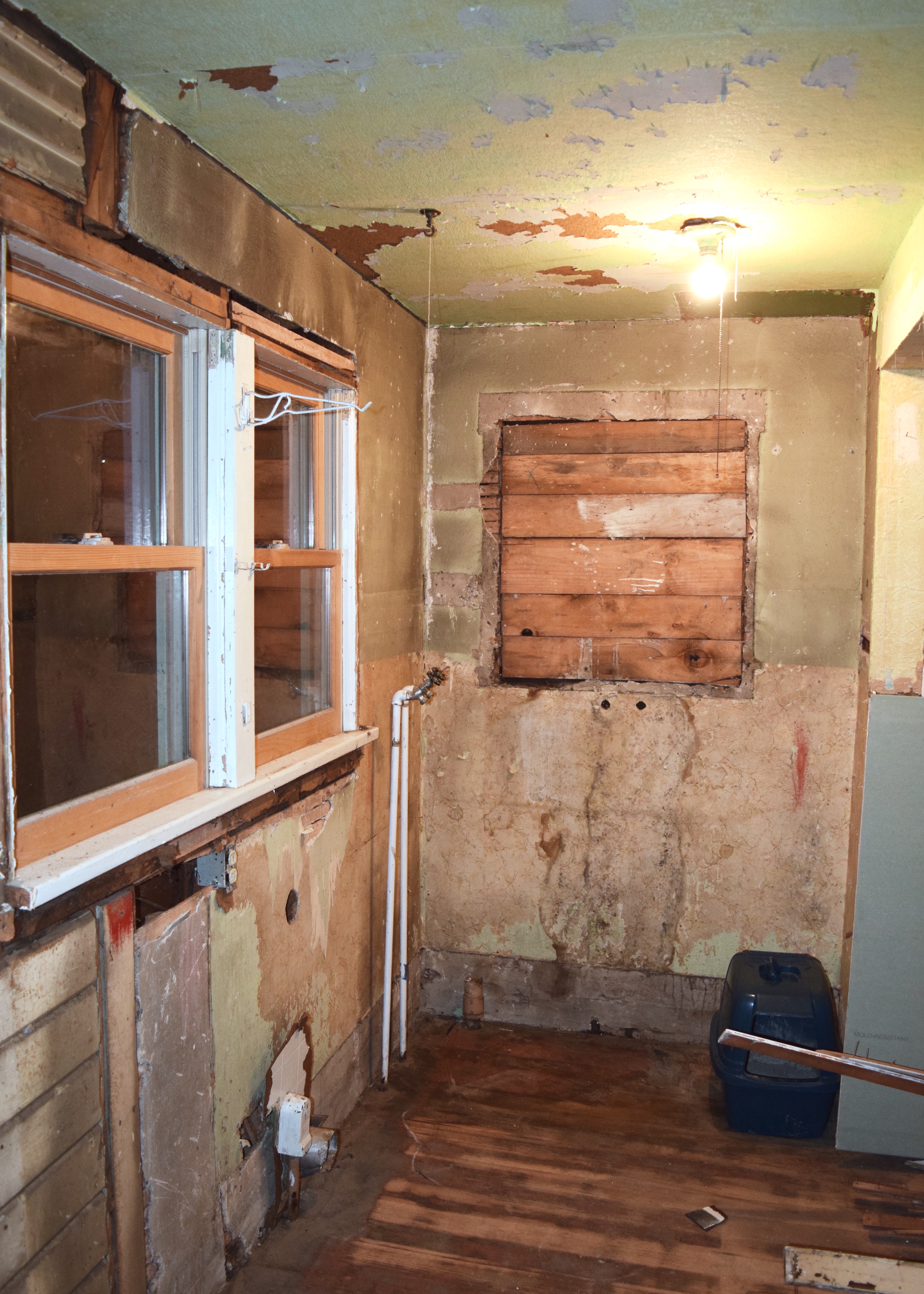 Second, apparently there used to be another window in here! It had been boarded up and hidden underneath the lathe and plaster and the siding had been patched on the outside of the house, so it hadn’t been obvious from either side. The kitchen is pretty dark in general though so a window west facing like this one could have let in a ton of extra light. I was tempted to see if it would be possible to restore it… but that would have been a whole ton of extra work and would have taken up valuable wallspace.