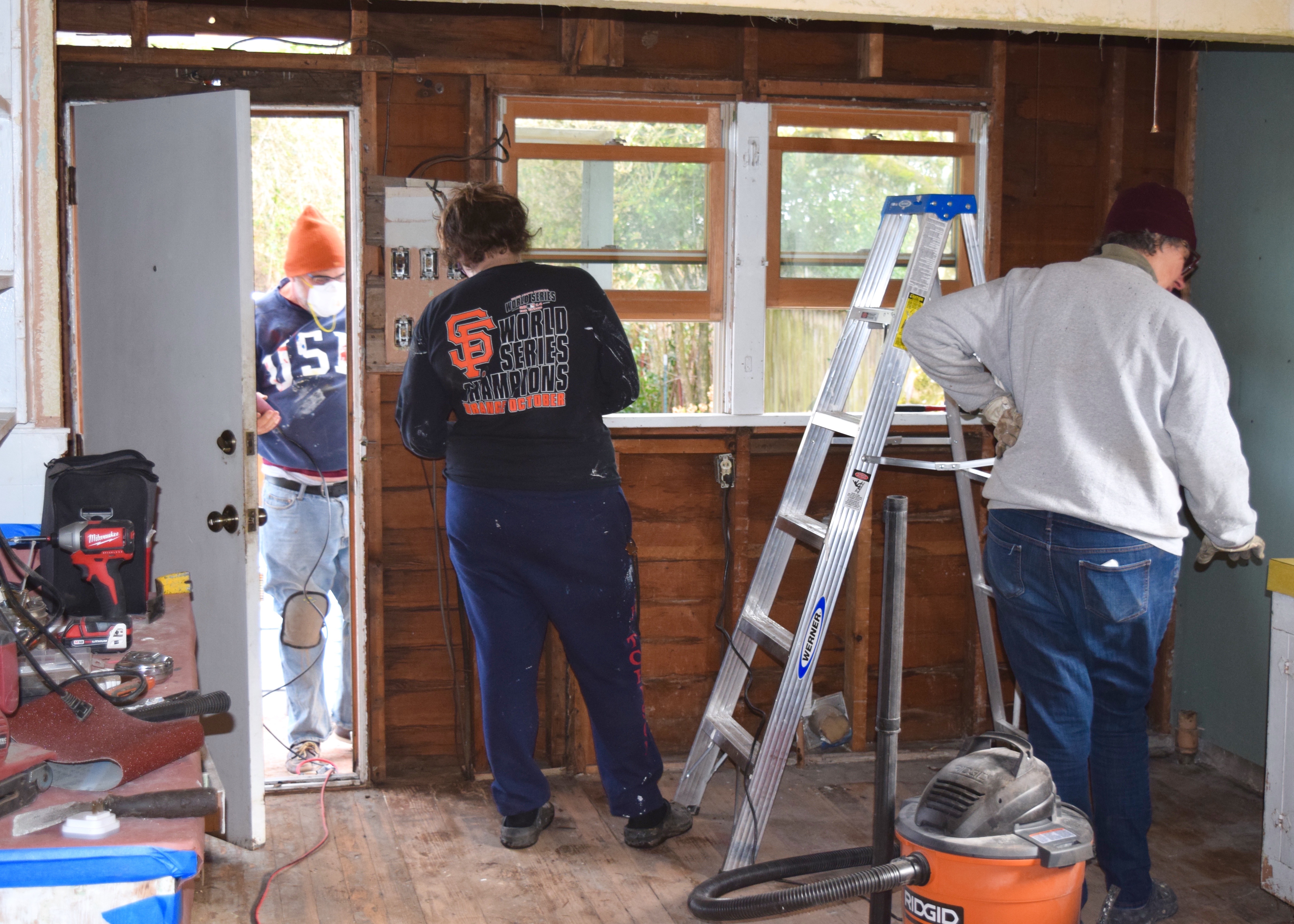 I threw some insulation in the cavities and my mom and sister started hanging drywall and rough taping and mudding. It looked much better like this. Almost like a real house again.