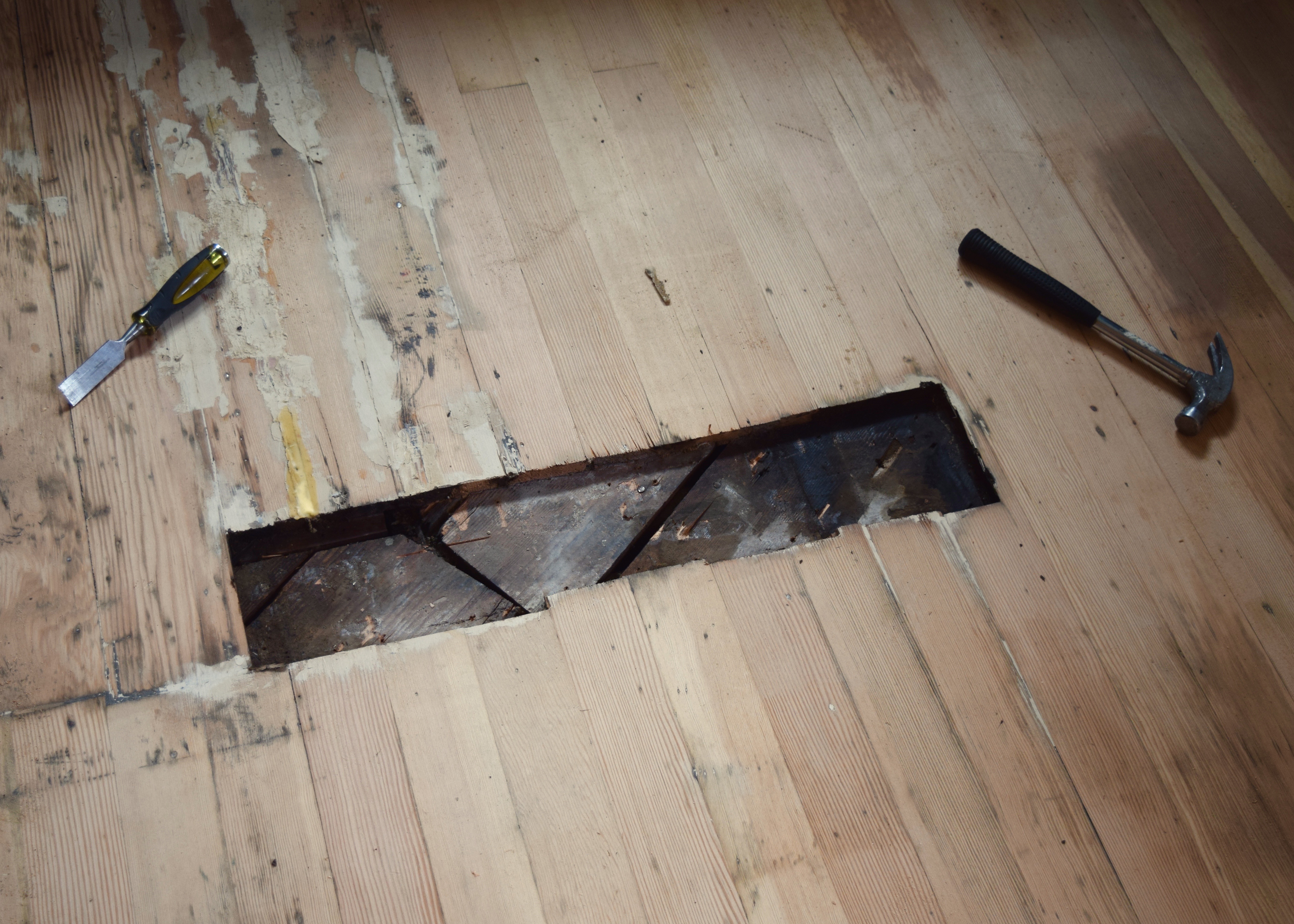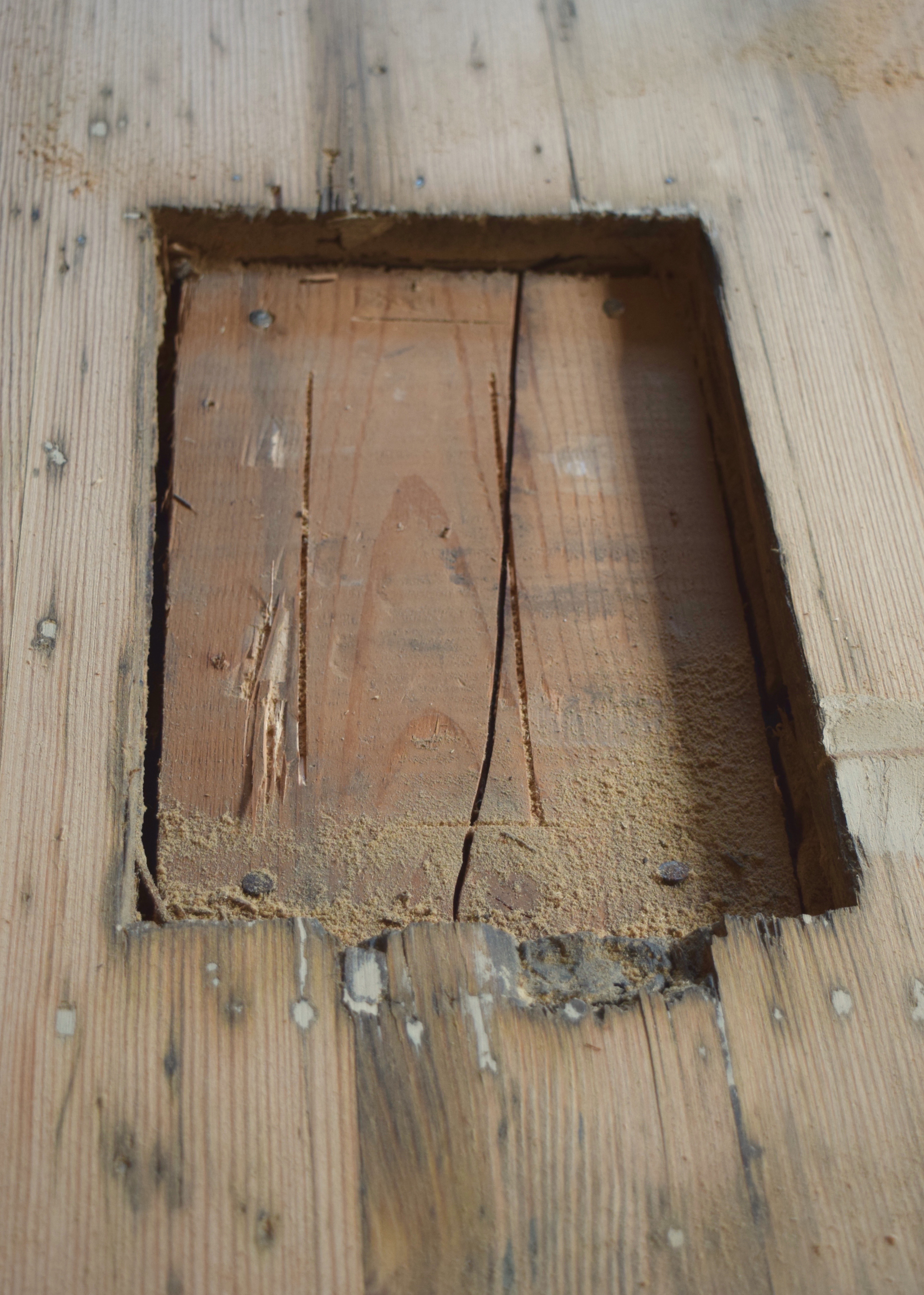 The edges of the section I’d chiseled out were all off though since the planks had been so many different sizes! So I did need to fix that before installing my new pieces.