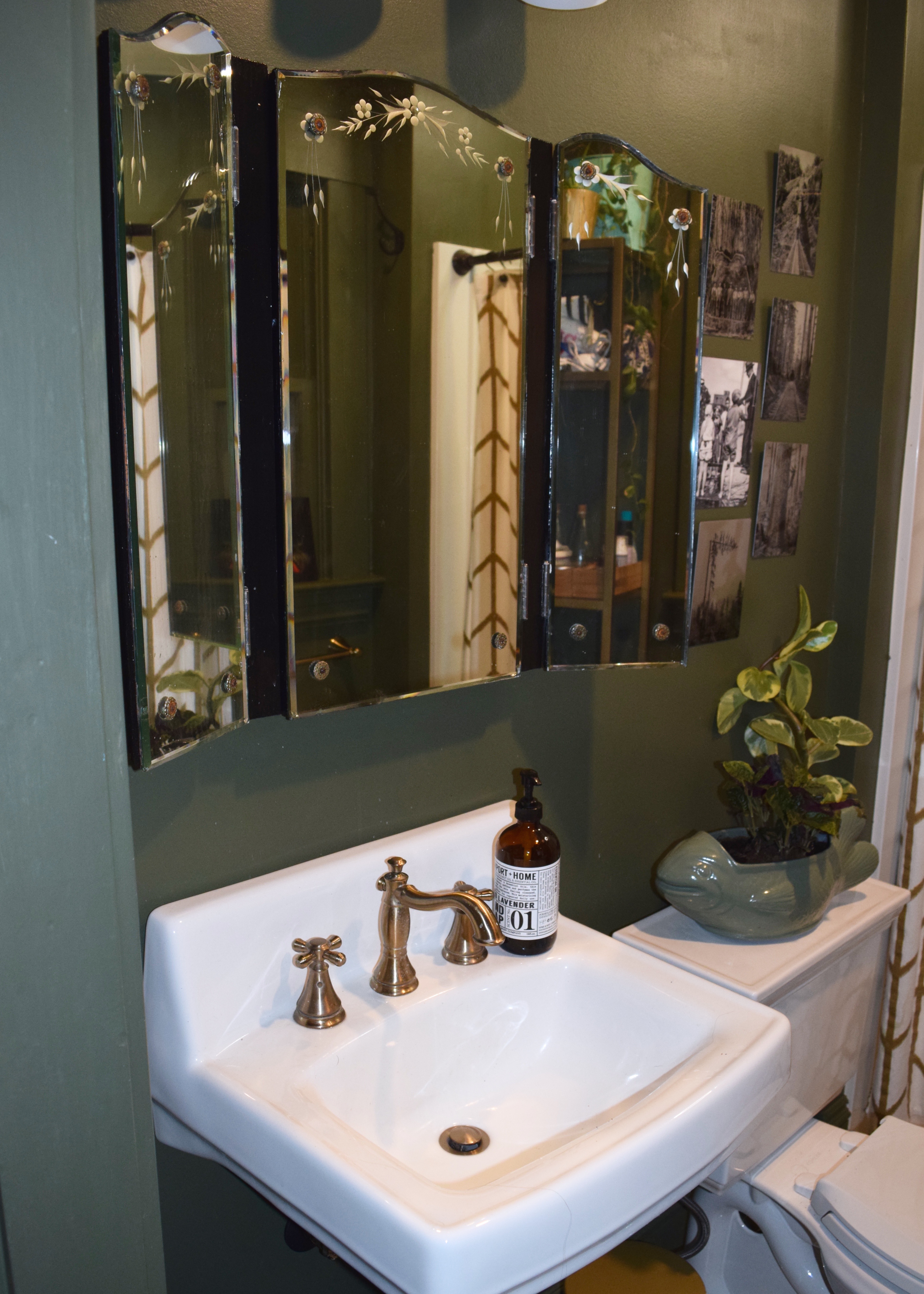 I think the cabinet adds just another little layer of history to this bathroom, making it feel more like an authentic space in the house. And that’s the whole goal right? Return the original character to my house. My parent’s place was built in the 1930s, which is probably when my house was renovated to include an indoor bathroom (it’s highly unlikely that it was built with indoor plumbing when construction was completed in 1909), so the era of the mirror feels spot on!