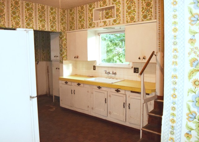 I would love to gut and completely reconfigure my kitchen, but right now my savings are focused elsewhere! So in the meantime I’ve begun Phase 1 of the kitchen renovation. This Phase is to hold me over until I can do a Phase II gut renovation and really move things around. Phase I includes a lot of cosmetic updates that have a big visual impact, but smaller financial impact: removing the sheet vinyl, refinishing my hardwood floors, painting the cabinets, and painting the walls. But while I’m elbows deep in those projects, I’ve still got kitchen planning on the mind. I’ve been pinning tons of inspiration of old kitchens and kitchens with old vibes, so when I’m ready to renovate, my vision for the space simply needs to be detailed out. In the meantime, I’m ready for Phase I to transform the space so it no longer looks like this hot mess!