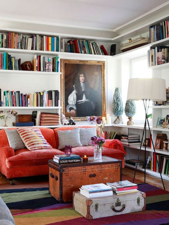 Chesterfield style sofas are some of my absolute favorite pieces of furniture out there (the red leather one above is a chesterfield!). They are stunningly gorgeous in leather and in velvets and add so much instant character and interest to a piece. They also have HUGE rolled and tufted arms that take up a ton of space. I would not recommend them in any room where space is a consideration. But if you have the room, they’re gorgeous!