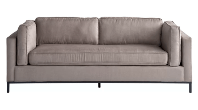 CB2 is another bigger box store that has lots of affordable options for sofa. They tend to be the more modern, young store compared with their sister, Crate and Barrel and often have some really fun options. Take a look at their new Curvo sofa, a true stunner that would make an amazing statement in any space. I love the blush color, but it also comes in grey. A sofa with this much style works best in a living room where the circulation goes around the sofa so you can check it out from all sides. Shoved against a wall, doesn’t do this sofa any justice.