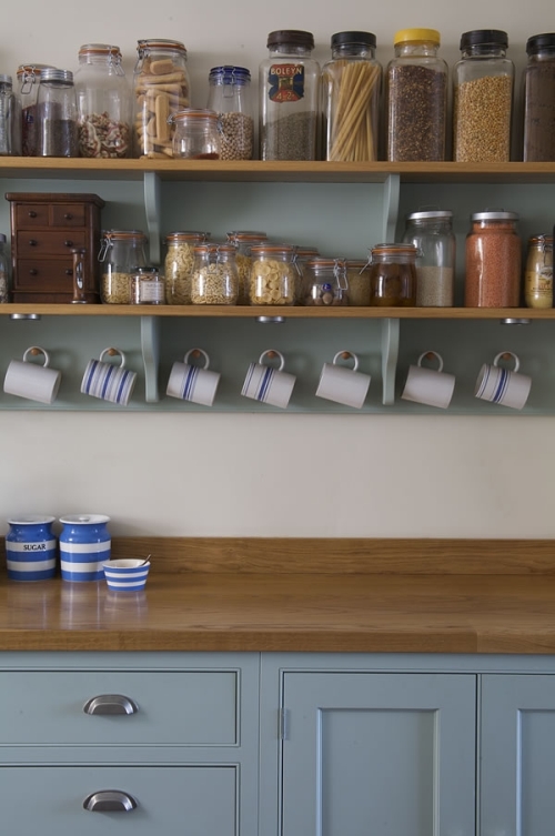 The plumbing will all be staying in the same locations, but I’ll be adding lots of storage around it. I’ve decided to add wall to wall shelving above the toilet and use simple wooden brackets to keep costs down. I love this picture of a kitchen which shows how classic and aged this look can be. It doesn’t feel cheap at all, even though it is super affordable at only a few bucks a bracket!