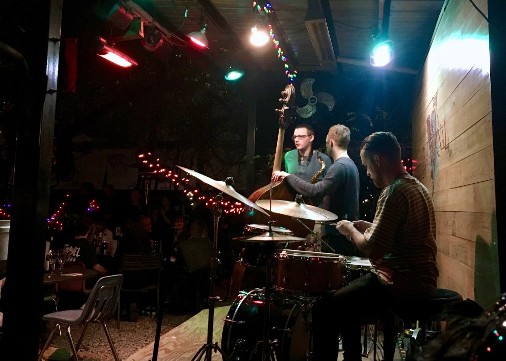 Meg was so sweet and drove us from Downtown all the way to Bywater to drop us off at Bacchanal even though she was headed in the opposite direction. It was just too kind and so generous! We waited in line on the sidewalk outside the club for about 30 minutes, reveling in the perfect not too hot / not too cold / all you need is a light sweater kinda weather. Perfect for listening to outdoor jazz! Once the bouncer let our trio inside, we bought a bottle of wine that Hannah picked out (our team wino).