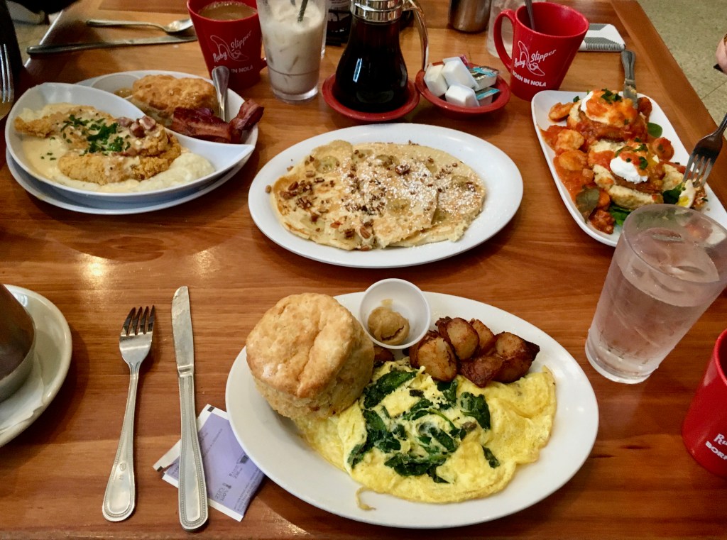 The next morning we woke up and all crawled into bed together chatting, before we finally got ready, and headed out for breakfast. We made it to Elizabeth’s in Bywater by about 11am, showing Claudia all the cute houses we’d found the day before along the way.