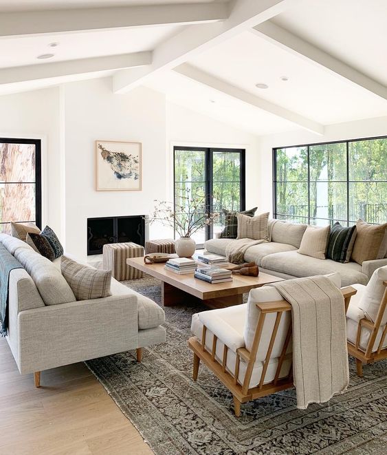 This is one of the newer styles to come out in recent years and it is BLASTING onto the scene with amazing designers like Amber Lewis just killing it left and right. As the name suggests, this style came out of California (specifically Southern California) and promotes an indoor / outdoor lifestyle. This style epitomizes casual, but expensive comfort and was popularized by Southern California celebrities. A limited color palette dominated by varying tones of neutrals with subtle accent colors is a must. Natural fibers like linens, wools, and cottons are popular and pattern is limited primarily to accent pieces like ottomans and pillows as well as area rugs. Patterns are usually classic or tribal inspired and while colorful, always subtle and subdued. Light woods and black accents dominate this style. Plants are a must, but no more than one or two in a room. Interesting and unusual statement furnishings or lighting is key to this design style.