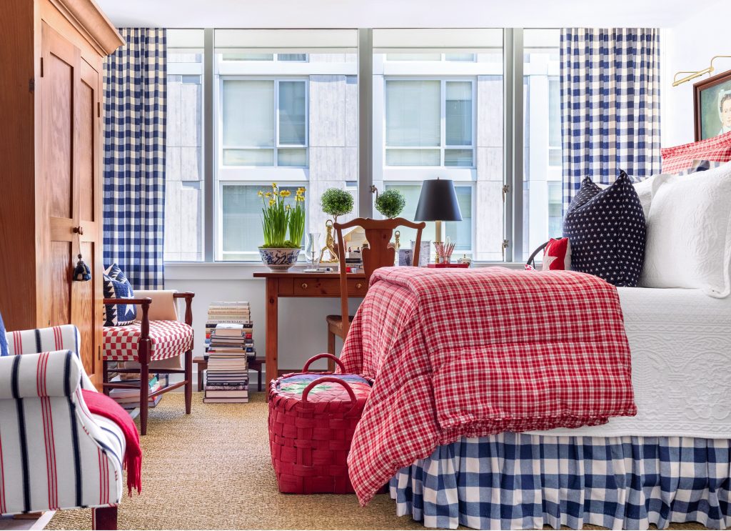 This is a classic American design aesthetic, just as the name suggests. It’s a blend of traditional with country farmhouse and it’s just lovely! This design features the classic red, white, and blue color scheme of the USA and cleaner lined traditional furniture, often Shaker style or Amish made. Patterns used are classic: plaids, stripes, checkered, gingham, or polka dots. It can sometimes be difficult to strike the right balance to keep this bold color scheme looking classic, rather than as if the 4th of July threw up in your room, but this is where lots of subtle texture and use of layered neutrals comes in. You can see lots of blacks or brass metals, though sometimes silver tones also make an appearance. Old portraits, slipcovers, antiques, and classic quilts are all mainstays of this design style. Wall textures like beadboard, v-groove, or wainscotting are all important aspects of this aesthetic.