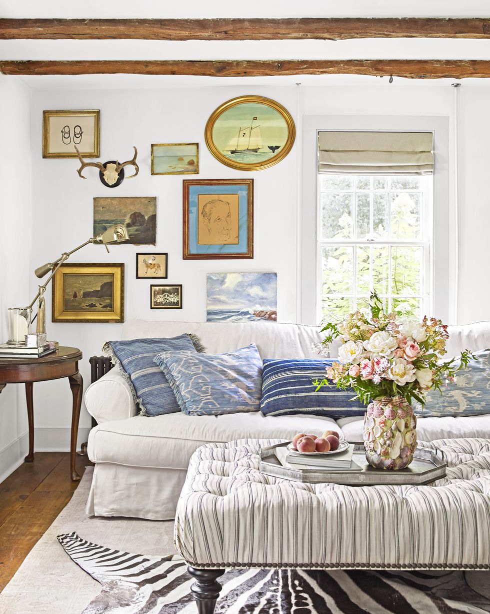 This is modern farmhouse’s older sister, a more classic country style that’s been around for one hundred years, country farmhouse really dives back to it’s more traditional, casual roots. Here the lines are less clean, the metals less black, and the rooms more colorful that modern farmhouse designs. You’ll see more traditional furniture pieces, curved legs, a tapered lampshade. These spaces tend to be contain more furniture and accessories and look over-filled in the coziest ways. You will not find industrial accents in a classic country home. Gallery walls, slip covers, classic patterns, and stone accents reign supreme in this style. Rustic furniture pieces or beams are a must.