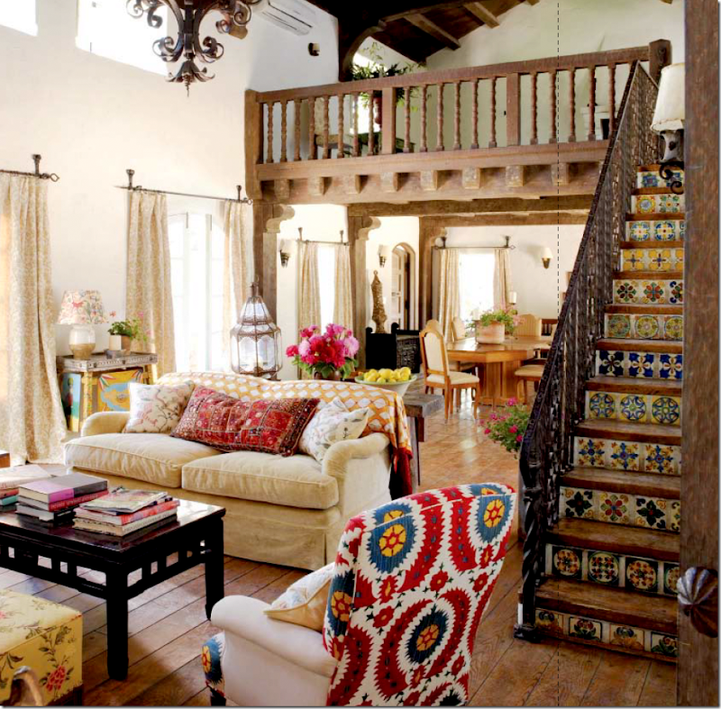 Again popular in California and the Southwest, these style comes directly from the Spanish colonial influences in these areas. Spain itself incorporates a lot of varying cultural entities in it’s own architecture and design and these styles draw from that type of complexity. While there are differences in Spanish, Mission, and Mexican styles, they are often very similar and hard to distinguish in newly designed spaces. Mission style (above) is often the most simple, incorporating lots of white walls, natural fibers, and black accents. It can be colorful, but is often more restrained and simple. Spanish style (below) in contrast is more colorful with Moroccan influences and various intricately patterned pieces, with bold styling.