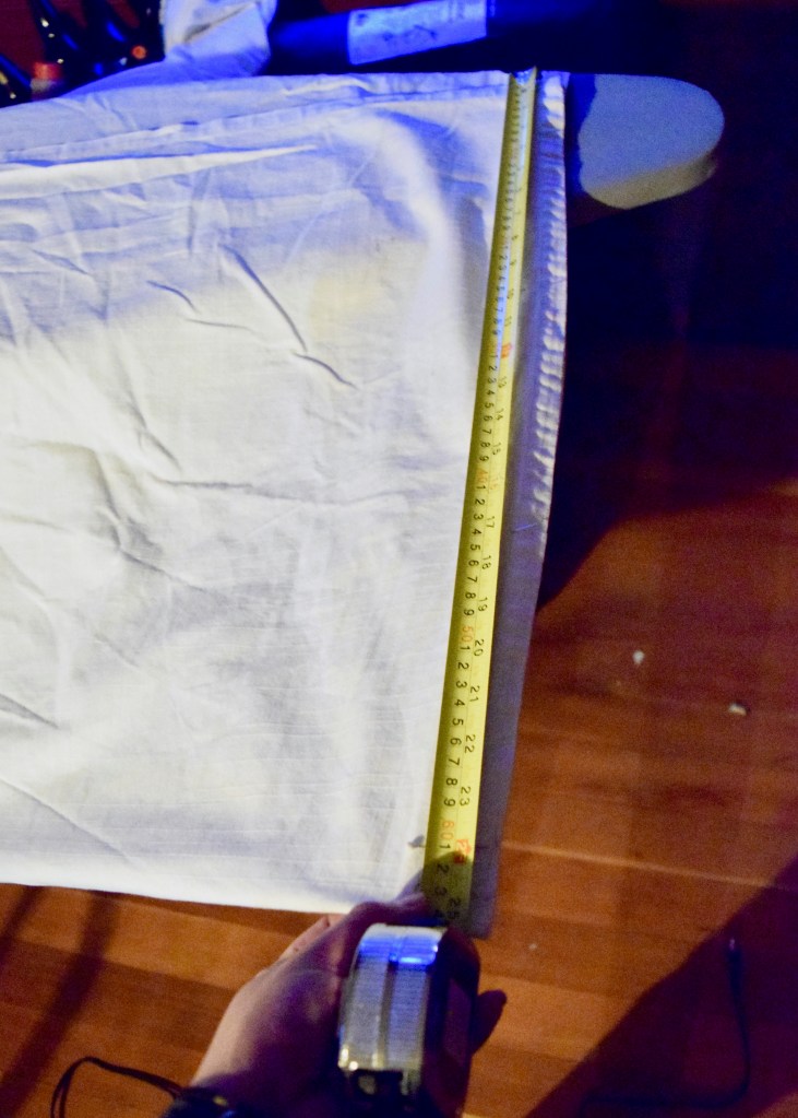 In order to get a nice crisp hem, I needed to iron my curtains out. If they’d been hanging for the last year, I probably could have skipped this step, but these had been folded and stuffed in the corner of my close for the last 8 months and were very wrinkly! I borrowed my roommates iron and got to work.