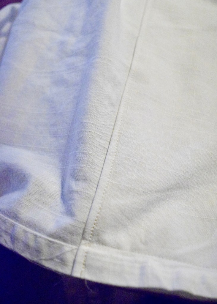 I had four panels to hem, so I repeated this entire process with each one and it took about one entire 8+ hour day. The ironing was by far the most intensive part so if your curtains are fresh from the dryer or less likely to wrinkle than 100% cotton, you might speed up the hold process. The actual sewing of the hem was so quick and fun in comparison to the ironing!