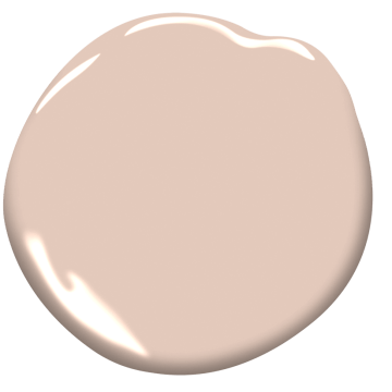 Benjamin Moore’s Pink Beach creates a bright and rosy room off of the darker and moodier master bedroom.