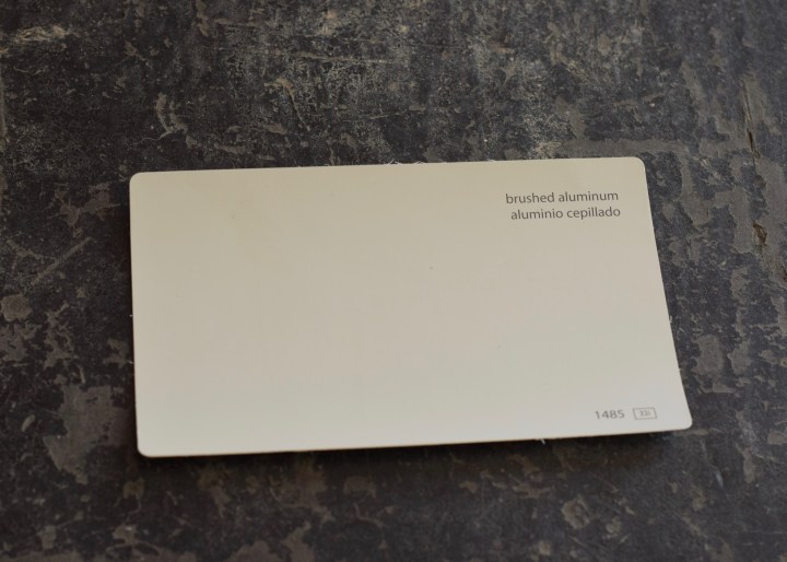 For example, let’s take my living room paint color: Benjamin Moore’s Brushed Aluminum. By itself it looks like a grey paint right?