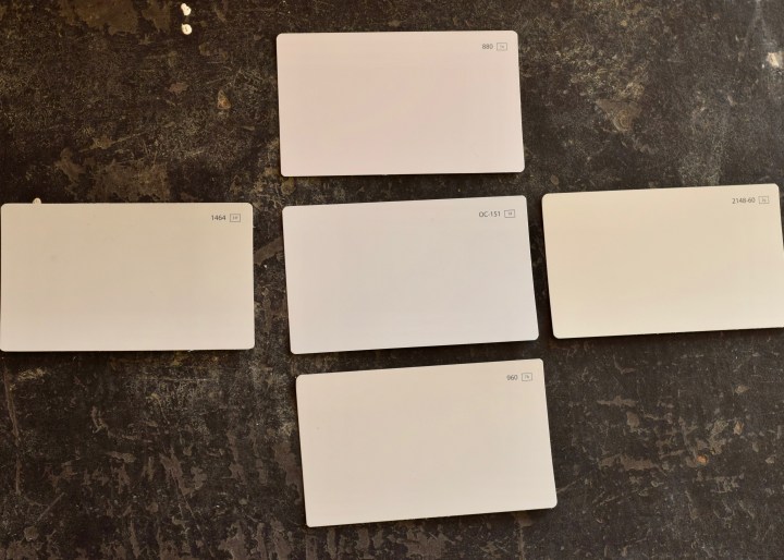 Test a few different whites and take a closer look to compare the different options on your wall or trim. Does that white still look good in the corners? Does that warmer white actually look better with your wall color? My exterior trim paint is actually a very warm white — Sherwin Williams Creamy — but still reads super crisp.