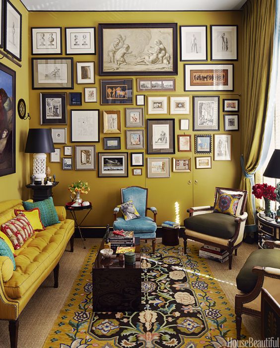 This color palette is a riot of color and fun. It pairs well with funky, colorful wallpapers and a sense of humor. I can see this in the home of a traditionalist who likes to have some excitement in their lives. It’s a palette that needs a house with lots of trimwork and all cased openings to allow transitions of colors between rooms. This color palette is not for the faint of heart, but boy do I love it!