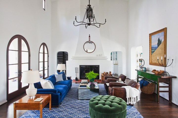 Spanish style homes are famous for having plaster arched doorways which means there are often fewer cased openings to start and stop paint colors. This is why many Spanish Style homes have clean white walls and a riot of colors in their furniture pieces!