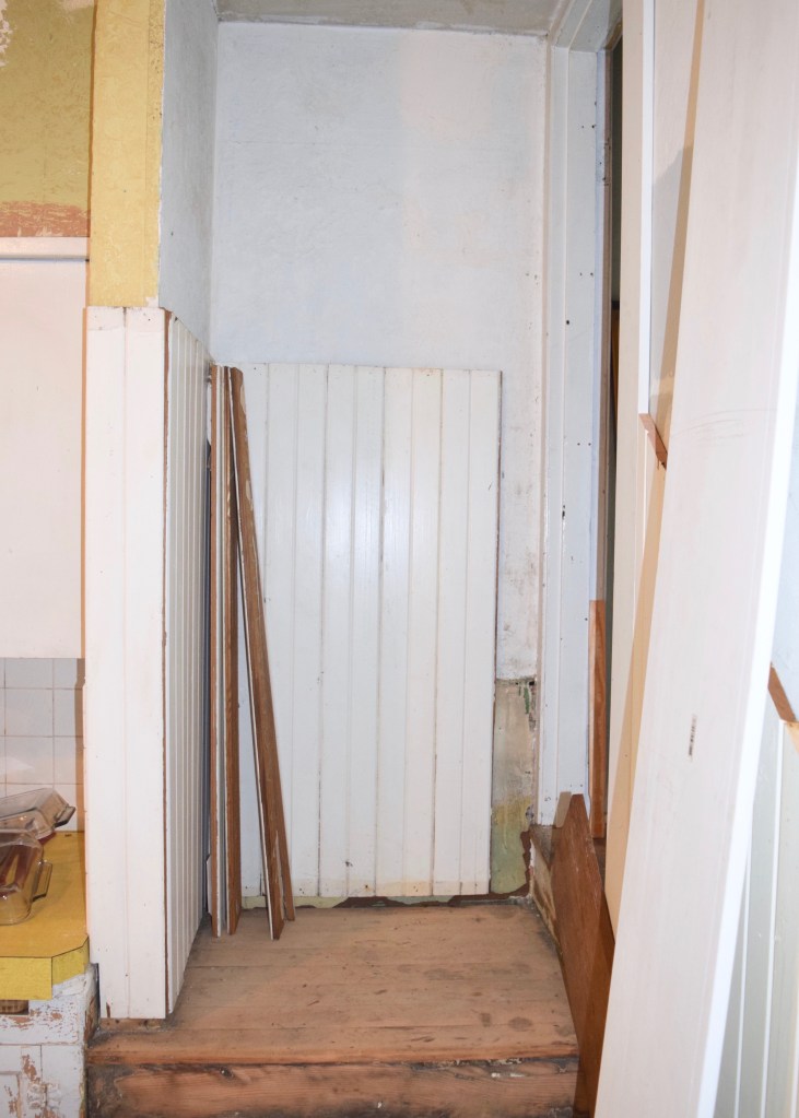 The slabdoor blocked so much light in an already dim kitchen, it clearly needed to go. I also needed to remove some of these defunct electrical switches which my electricians had pulled power from, but not removed when I updated the electrical at Berrybrier.
