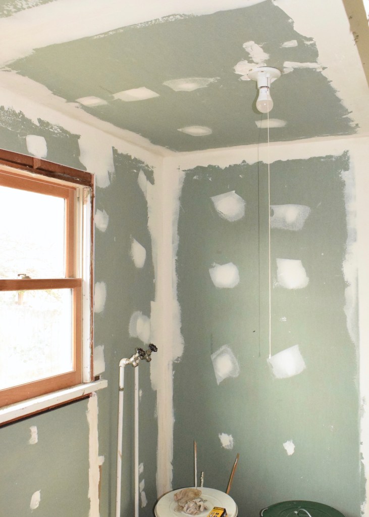 Just kidding, she hated it. Everyone hates drywalling, did you know that? It’s tedious and terrible and very difficult to perfect. But Bronwyn did a great job in this space, so maybe I’ll rope her into further mudding projects down the line? Excuse my temporary light fixture. I really want to switch it out for this cute one.