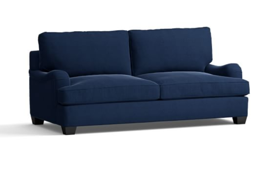 I also couldn’t help but look for an English roll arm, as that sofa style will always have my heart. This one from Pottery Barn is super cute, but doesn’t come in green. It looks stellar in navy, but navy’s not my jam, so I’d probably do a charcoal color instead. But then I’m giving up my life-long dream of a green velvet sofa, so that doesn’t seem right either!