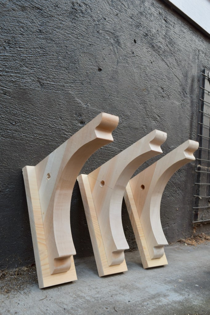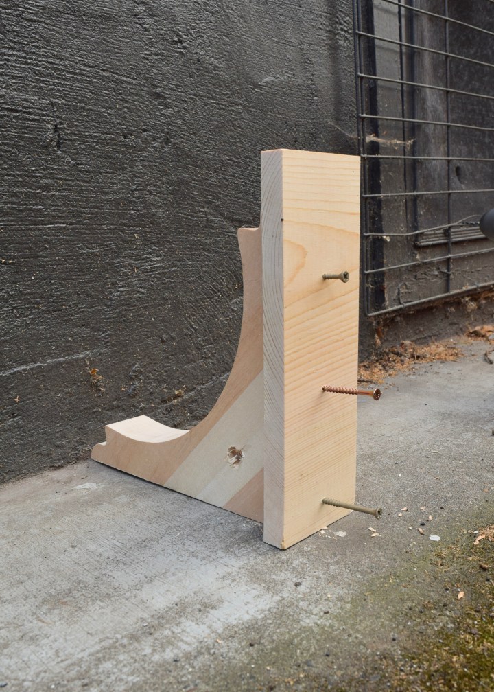 I knew I wanted some beefy brackets that would have a more traditional look to match the architecture of Berrybrier, so I found these at Home Depot. I wanted them to have a larger presence and a wider backplate for the shelf to rest on though, so I decided to use the excess from my 1×12 to add one. I cut a board 3/4″ wider than the bracket on 3 sides (skipping the top).