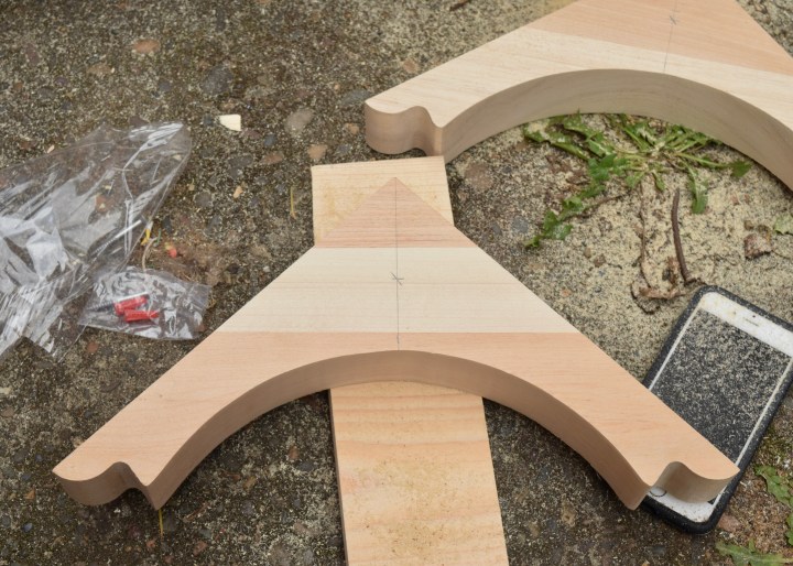Then once everything was cut, I measured out the hole for the copper pipe, marking the center carefully on each bracket.