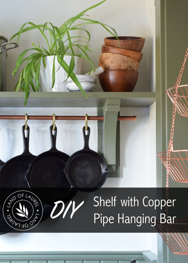 And since I could never find something that would suit my space exactly, I decided to build it! I wanted it to hold pots on top and have a hanging bar for pans below. Since there are copper and brass accents around the room, I decided to incorporate them once more.