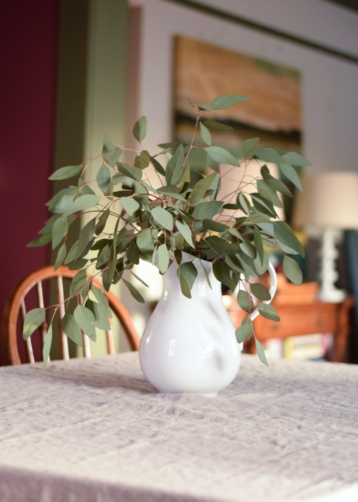 5. Hey, Laurel… so happy to meet you through touring together. I, too, am a single lady (single-again for the last 23 years). I totally understand eating on the go or on the sofa! 😉 Your furniture pieces are lovely, and your just can’t beat eucalyptus (or Lamb’s Ear) in a white pitcher! Pinned! (Feel free to link up your post at Tuesday Turn About… you can see it at myweeabode.com)
