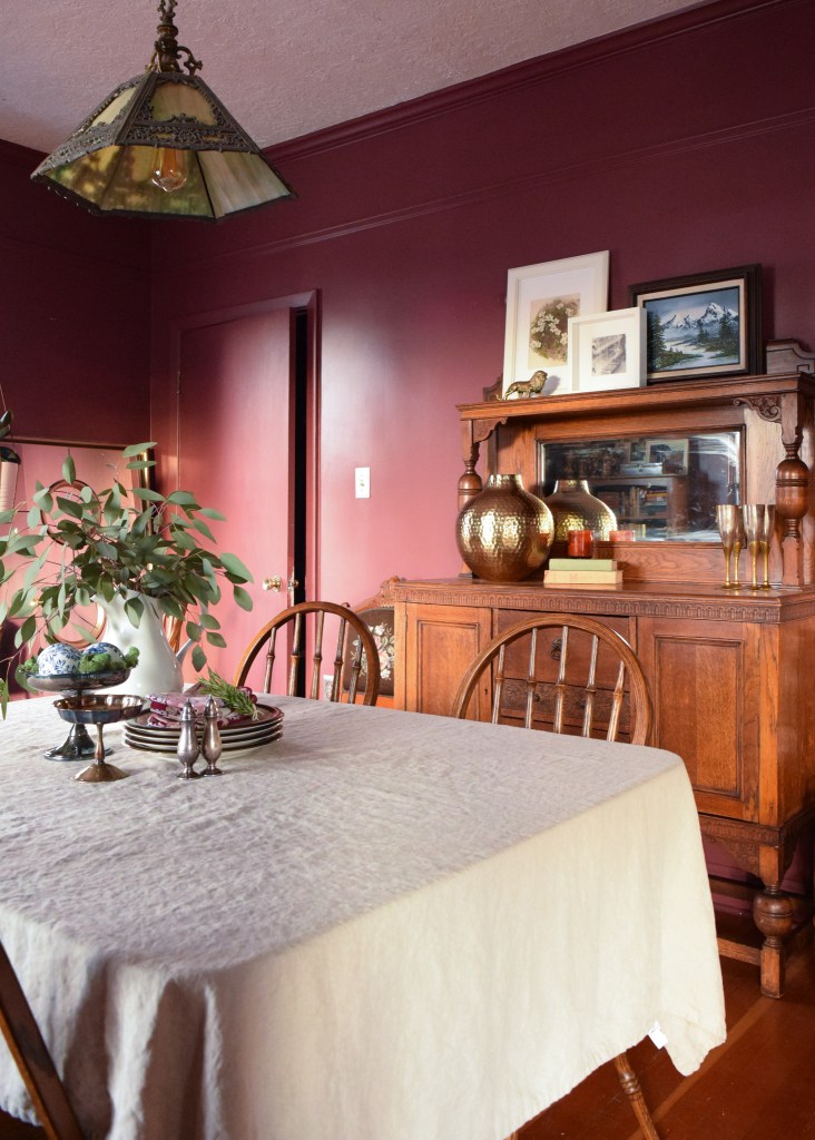 Back to our regularly scheduled programming though: can we just talk about the layered colors in this shot? My dining room is dark and moody, which is definitely not everyone’s cup of tea. At night, especially with candlelight, this whole room glows though. The dark color makes lighter tones pop and it makes me so pleased.
