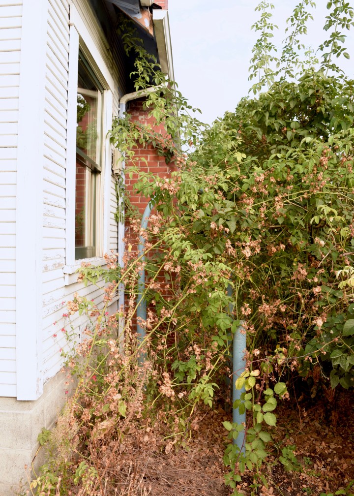 On the righthand side of the house the lilac tree was nearly hidden by a cacophony of climbing roses that were planted right beneath it. The roses used the lilac as a trellis and it was confusing to look at! There were also a couple of hidden garden structures: an arch and a post. I’m not sure what the original use for either was!