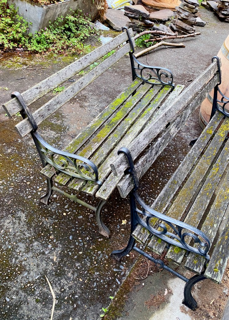 And speaking of the bench, I picked up a few project benches on Facebook Marketplace last weekend! They’re heavy cast iron and will eventually need new wood slats, but I think they’ll work great this year after a little pressure washing. They’re just about 48″ long which is pretty perfect for a casual place for two to sit!