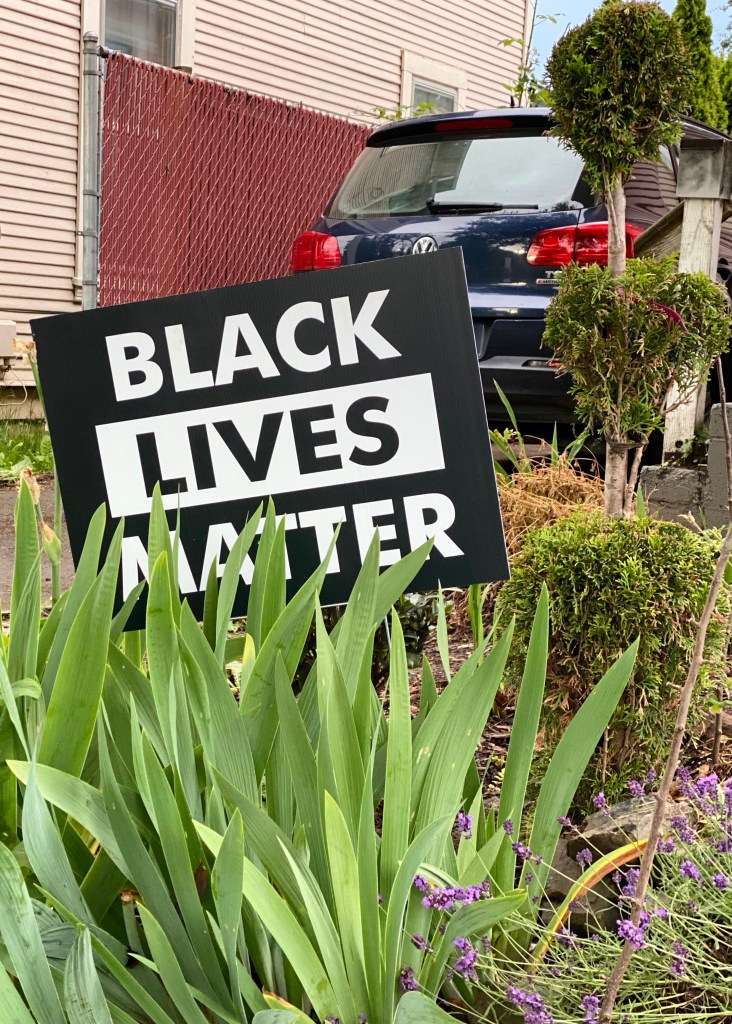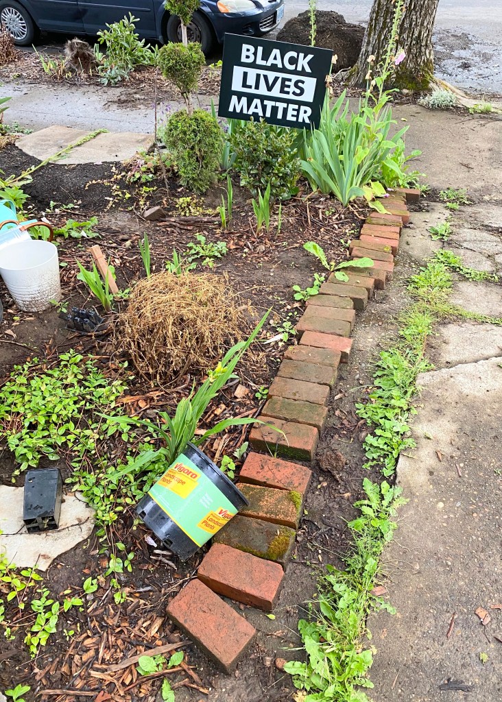 You may have noticed in that shot above we added some new signs to the window. Our house is avidly supporting the Black Lives Matter movement through donations, in person protests, and education. I’ve added another sign to the garden by the stairs to ensure all passersby are aware of our support.