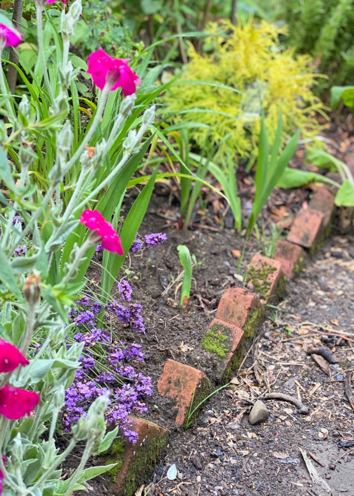 By this sign I’ve also brought a bunch of extra old bricks from my stash to finish off the edge of the garden where it meets the driveway.