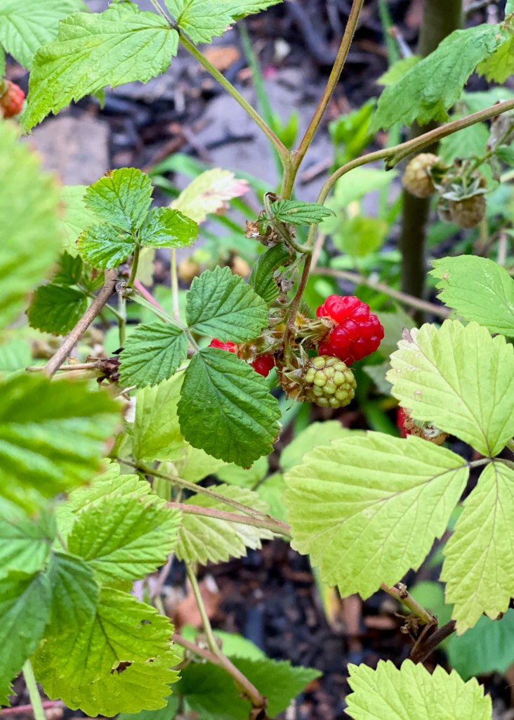 The raspberries are already starting to fruit. I expect a smaller harvest this year since I transplanted so many of these plants, but next year I’m hoping to have more than just snacking berries!