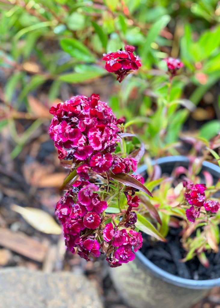 Oh boy, I really do need a pressure washer. You can’t even tell there’s a sidewalk underneath all that dirt there! The lavender does look excellent though. I also was gifted this Sweet William plant from a neighbor. I love the deep red color of it. I plan on planting it right next to the path, for easy admiring.