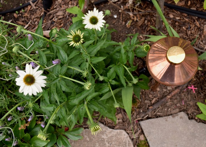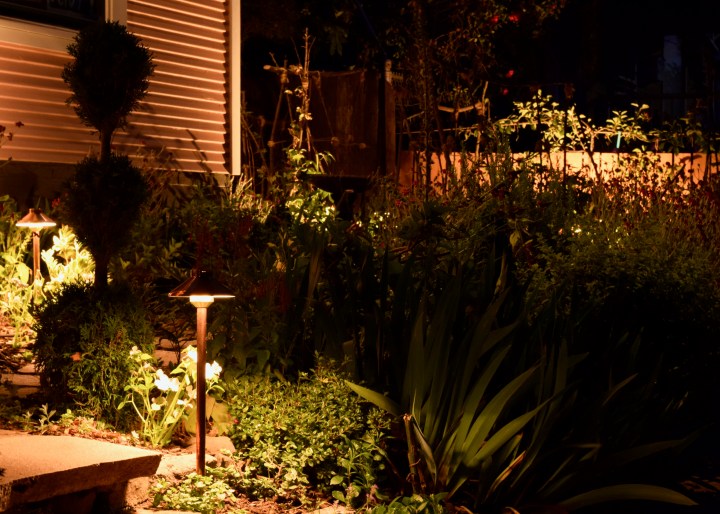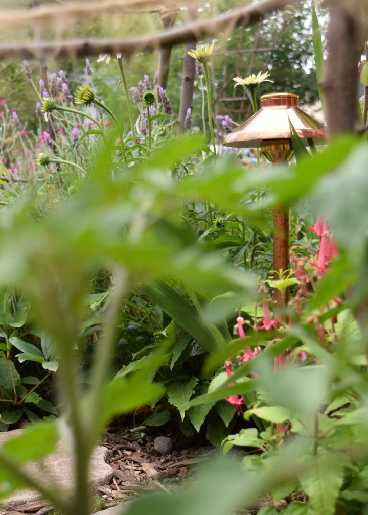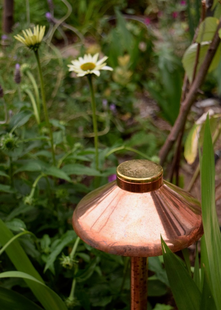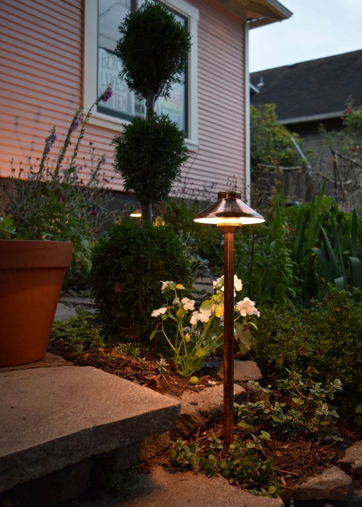 Okay, enough about the installation process though, let’s look at the pretty finished results! The lights are absolutely perfect. The copper of the Stepped Dome Path Lights catches the eye through the greenery and flowers of the garden. Even neighbors have mention noticing the path lights when riding their bike by the house!