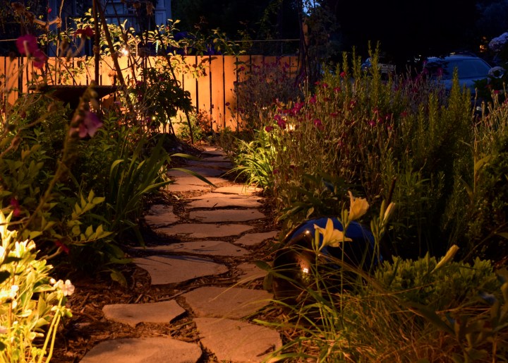 It only gets better! The garden just glows, y’all! The path is lit up perfectly, you can see your footing well, but it’s not blindingly bright either. The mix of path lights and down lights creates a natural rhythm as you walk down the path.